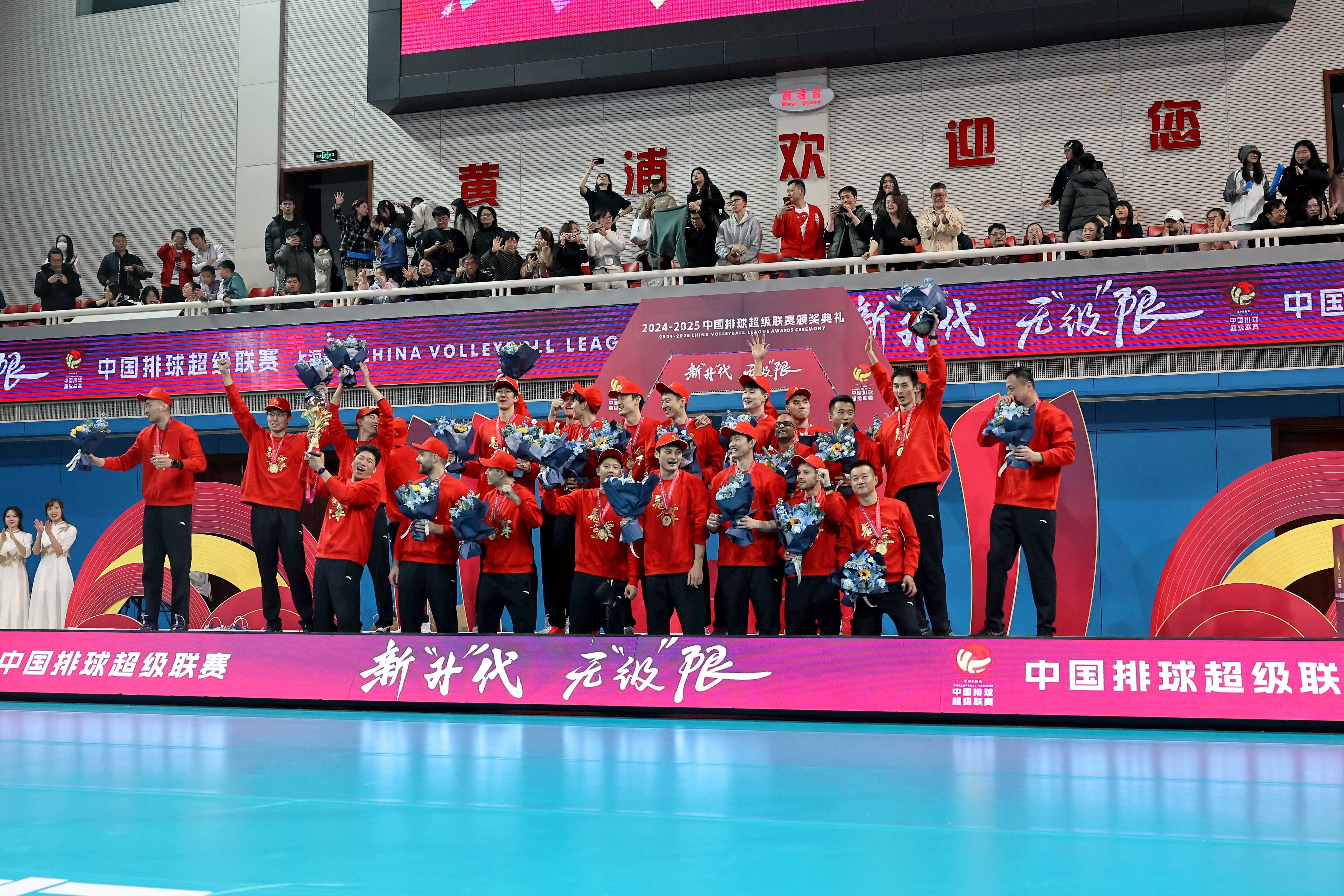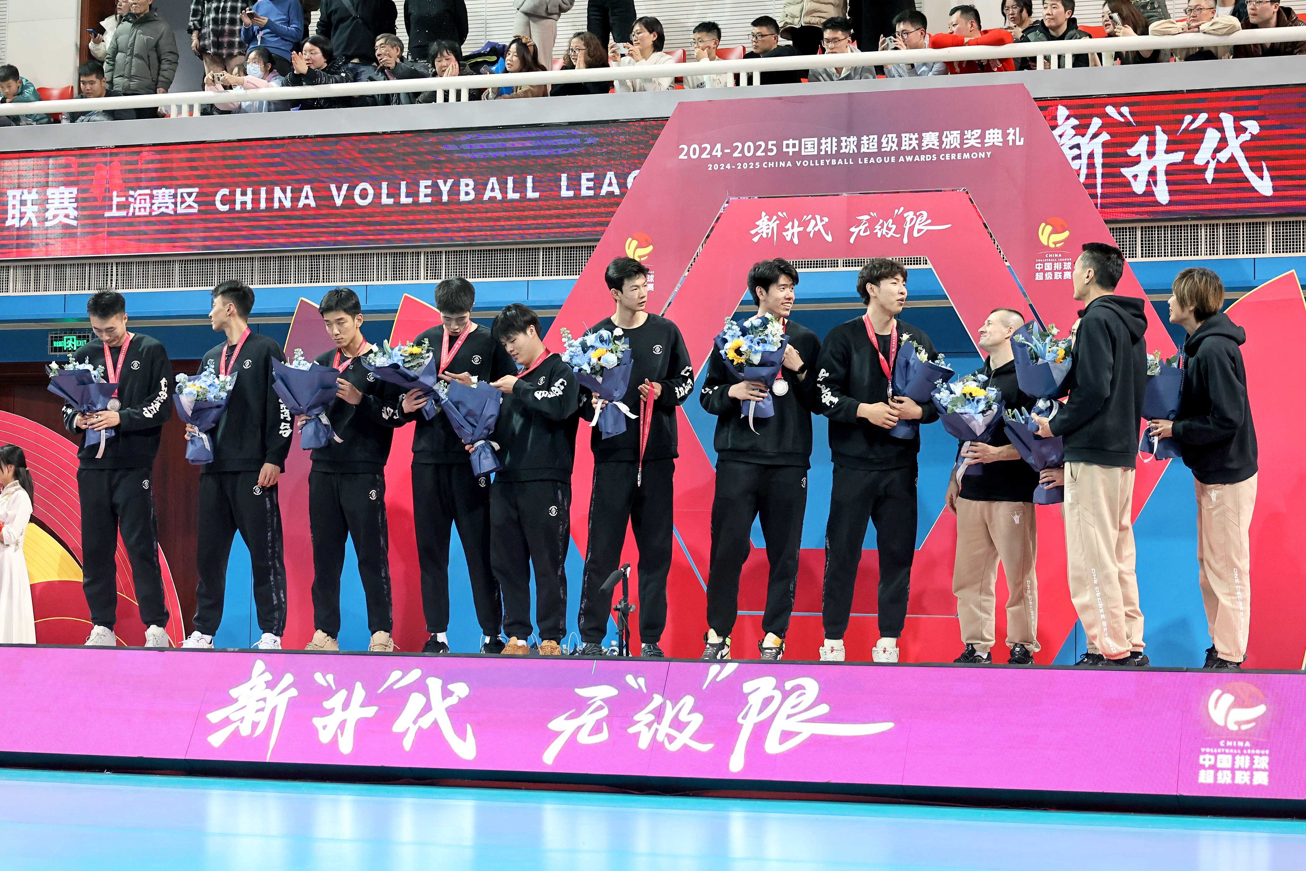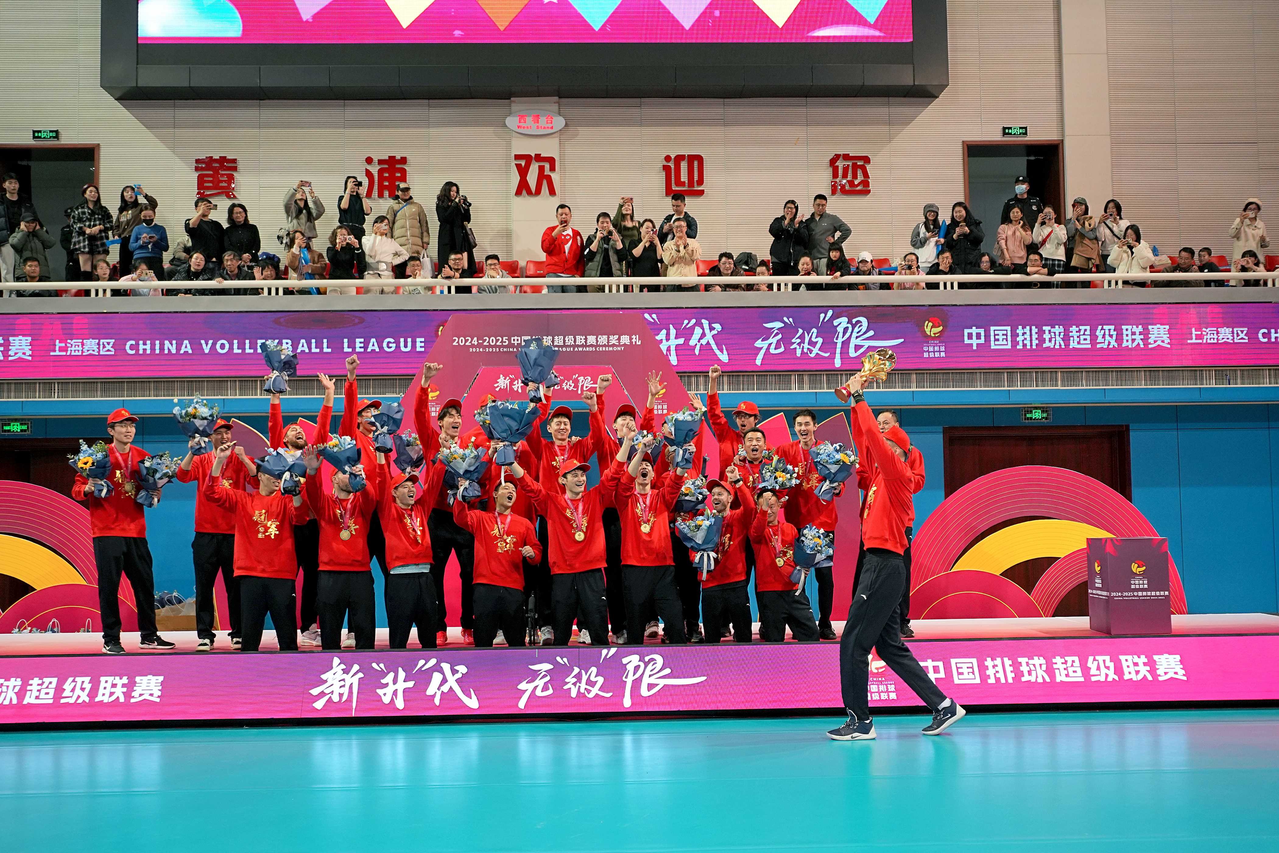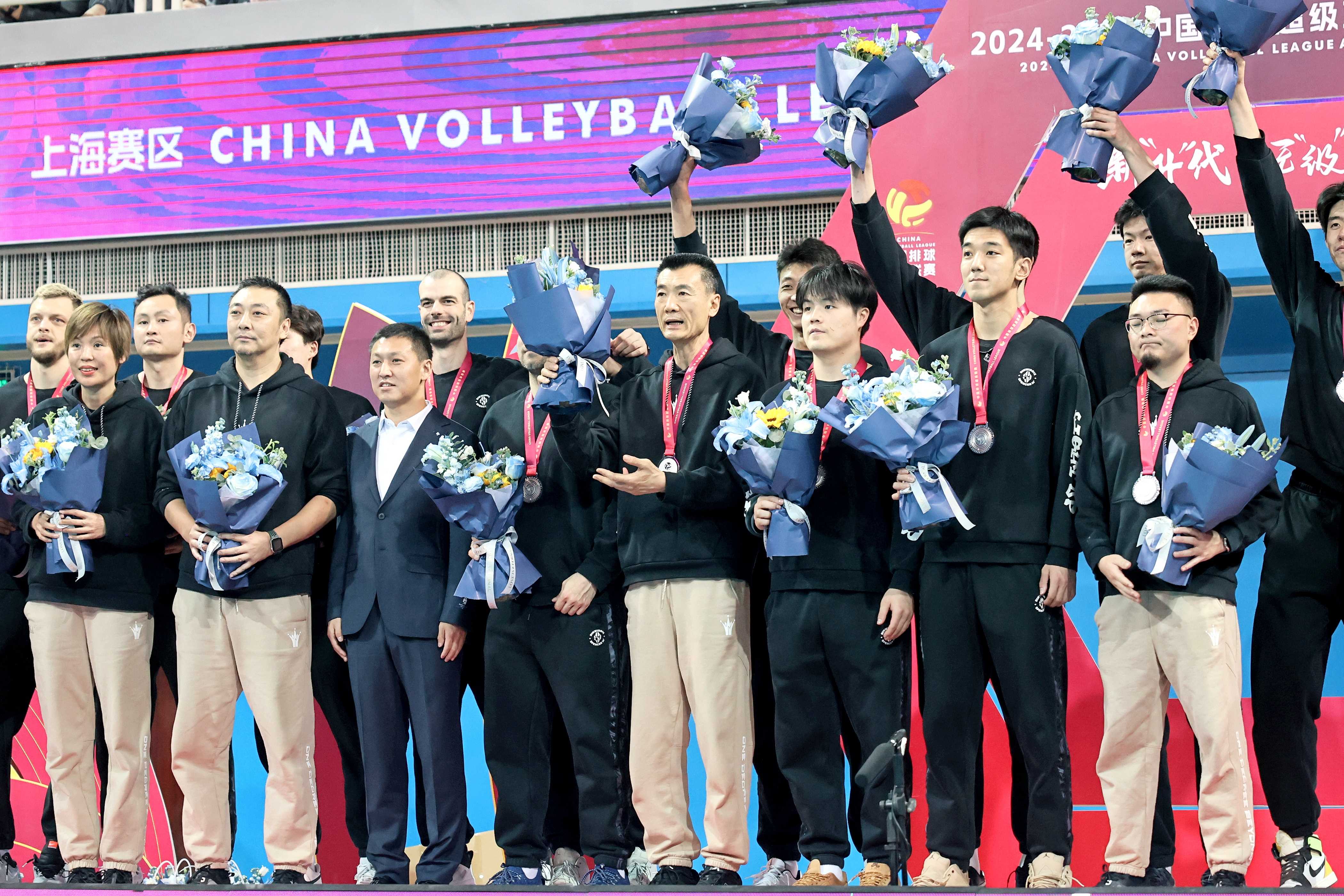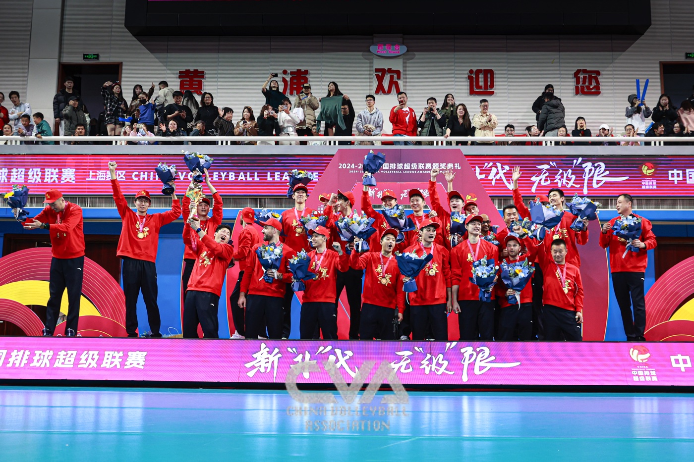2025年3月9日下午,2024-2025中国男子排球超级联赛A级总决赛在上海卢湾体育馆落幕。上海光明男排、保定沃隶男排、天津食品集团男排分列三甲。排名第四至第八名的队伍依次为山东松山小镇男排、浙江德清男排、北京北汽男排、广东台山和力男排、南京广电猫猫男排。