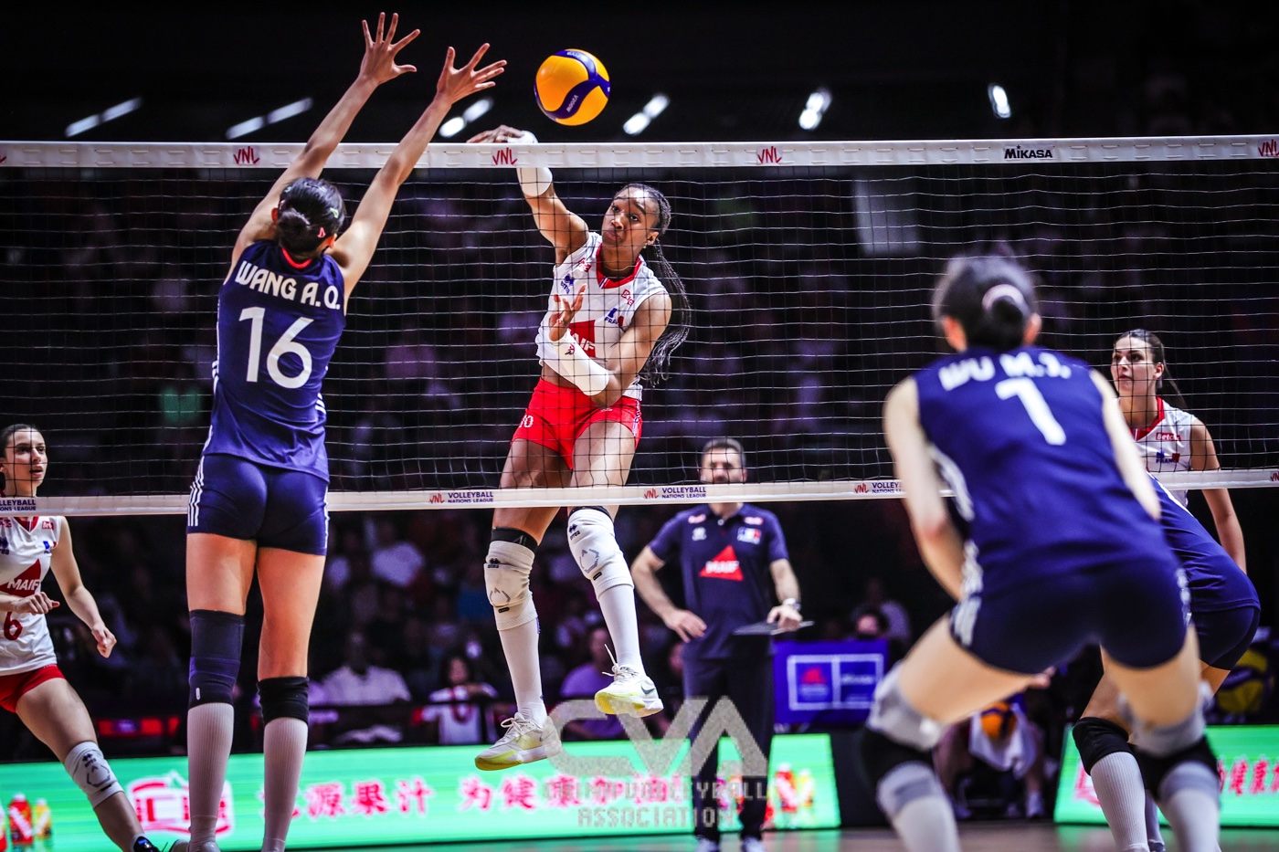 6月7日晚,2025年世界女排联赛中国北京站在国家体育馆结束第四日的争夺。东道主中国女排3比0战胜法国女排,三局比分为25比17、25比18、25比11。(摄影:朱琳)