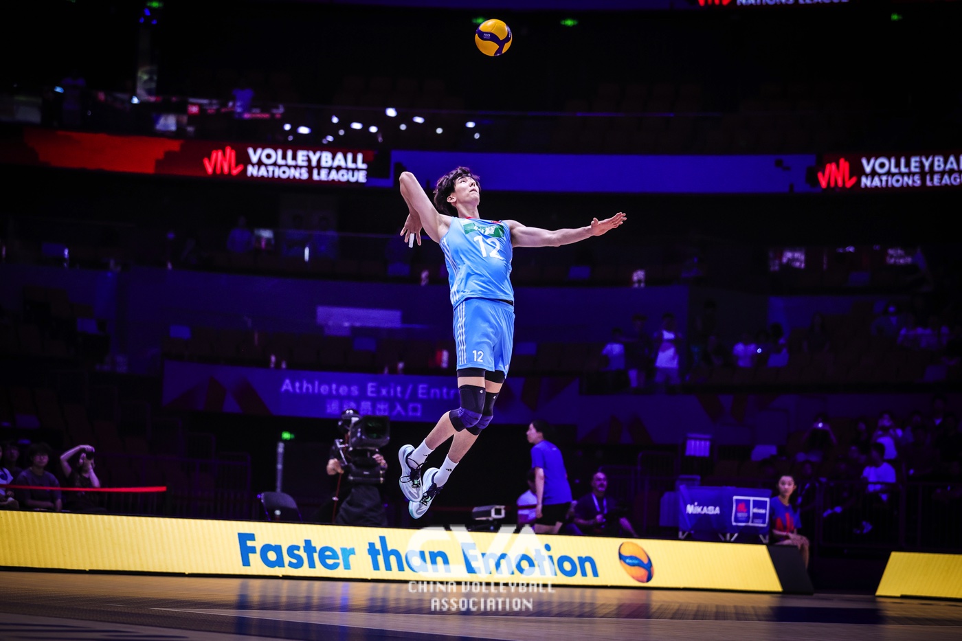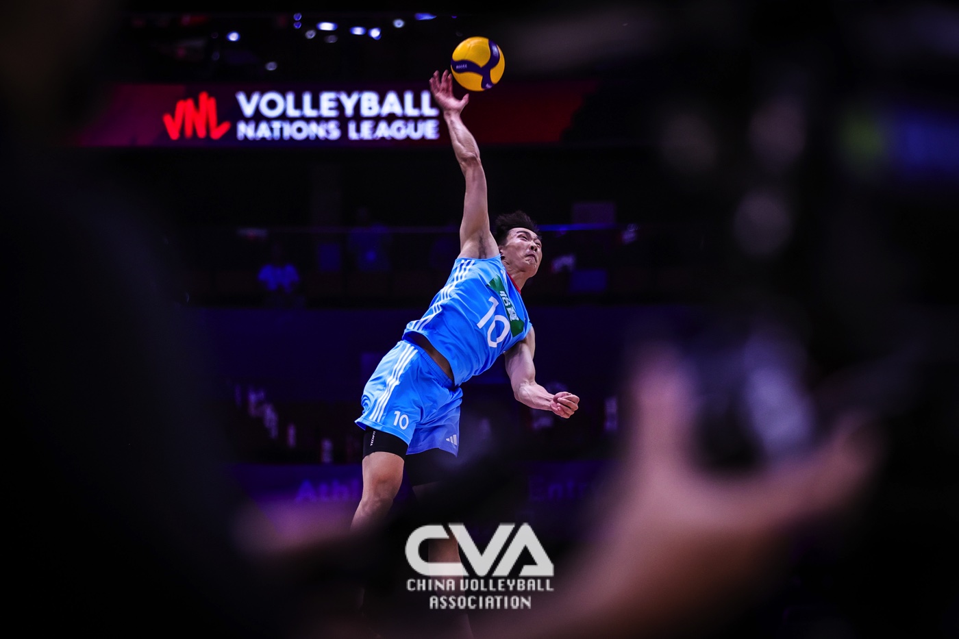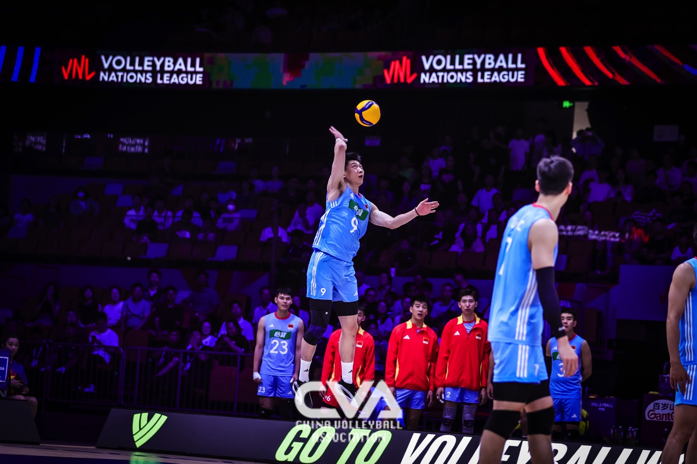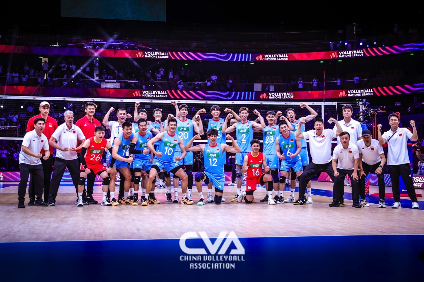 6月14日下午,2025年世界男排联赛中国西安站在曲江竞技中心展开第四日的争夺。面对世界排名第十四的荷兰男排,东道主中国男排3比1力克对手,四局比分为25比19、25比20、13比25、25比17。(摄影:朱琳)