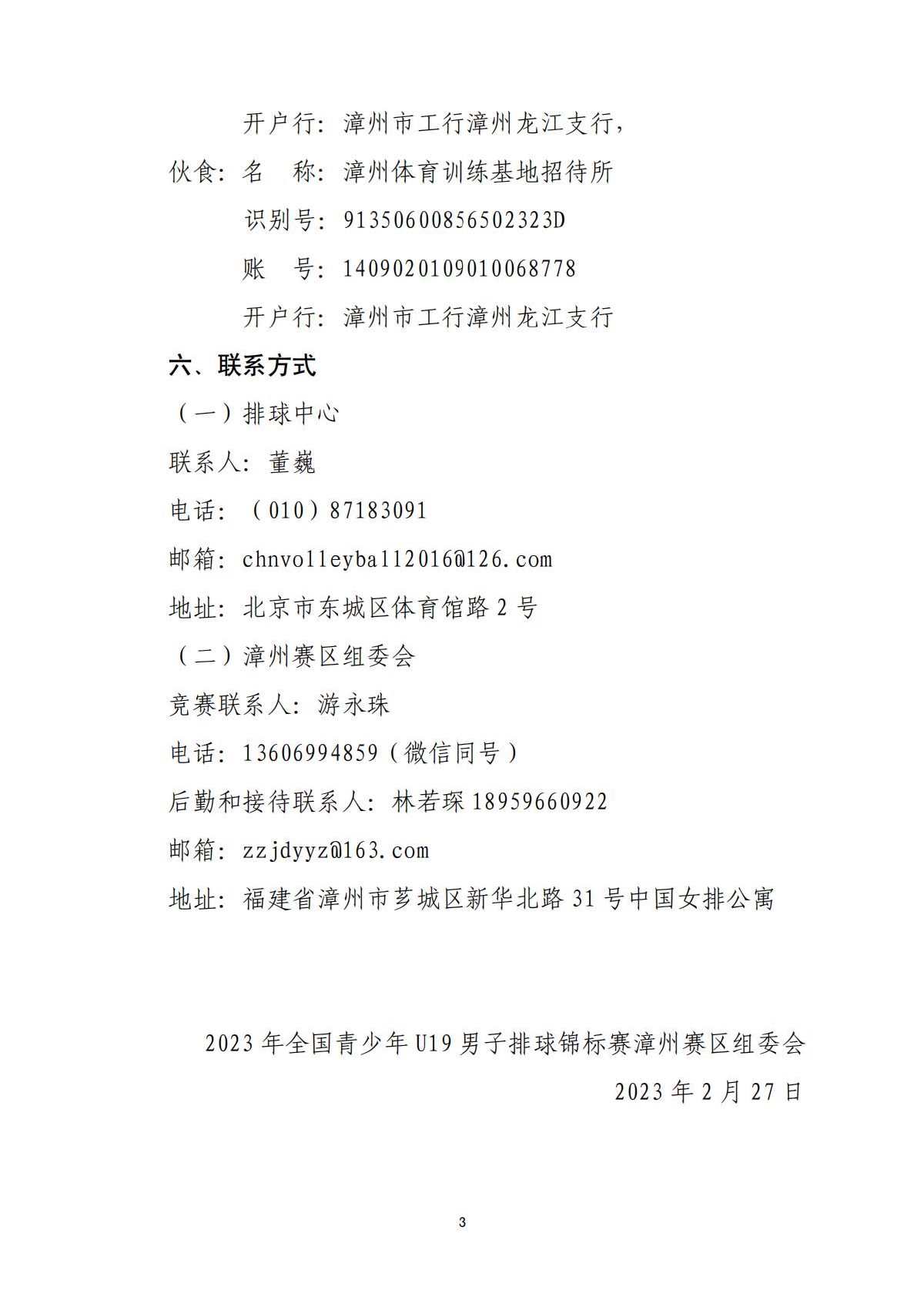 2023全国青少年U19男排锦标赛漳州赛区补充通知