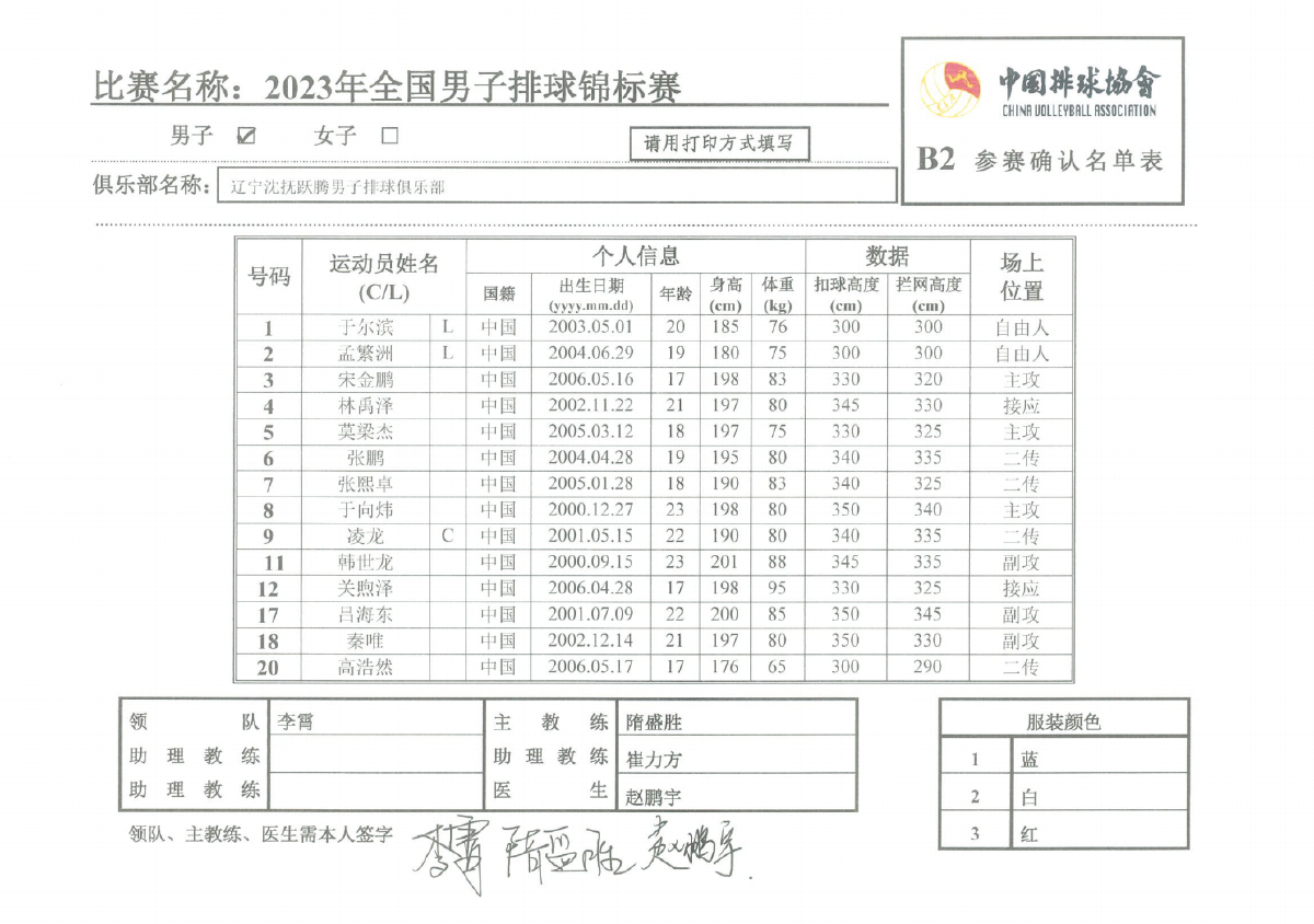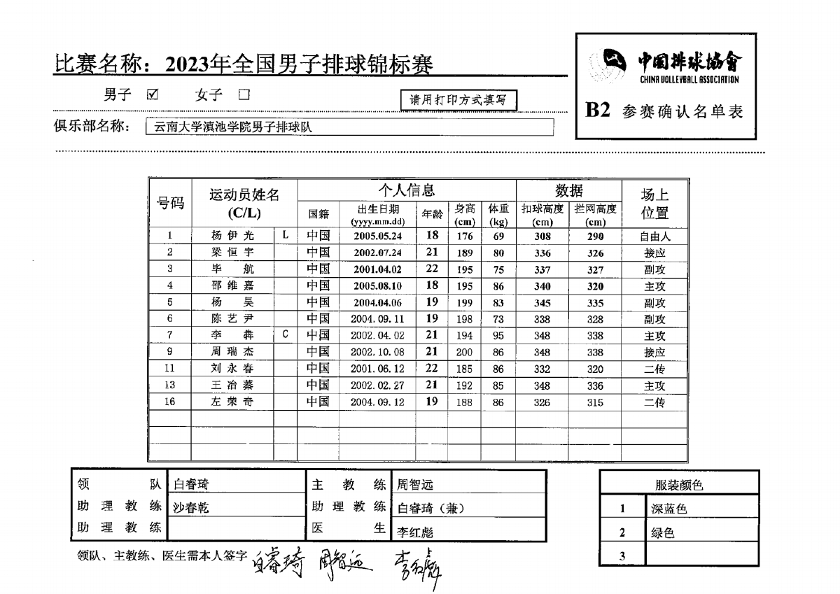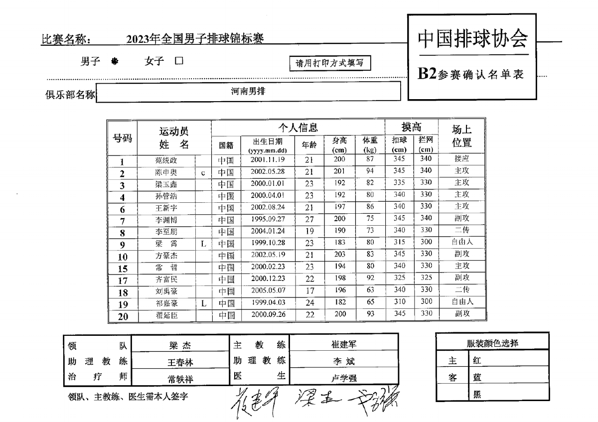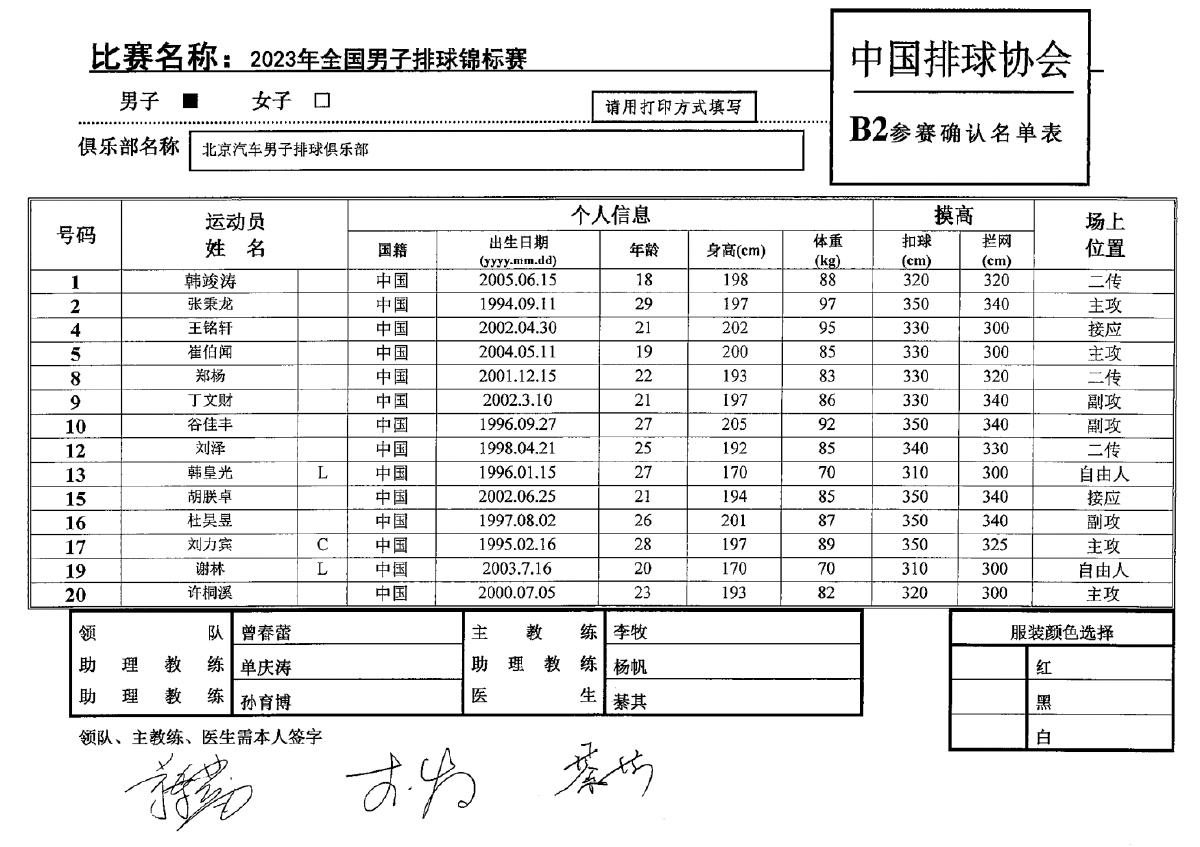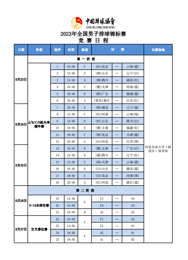2023年全国男子排球锦标赛1号公告
