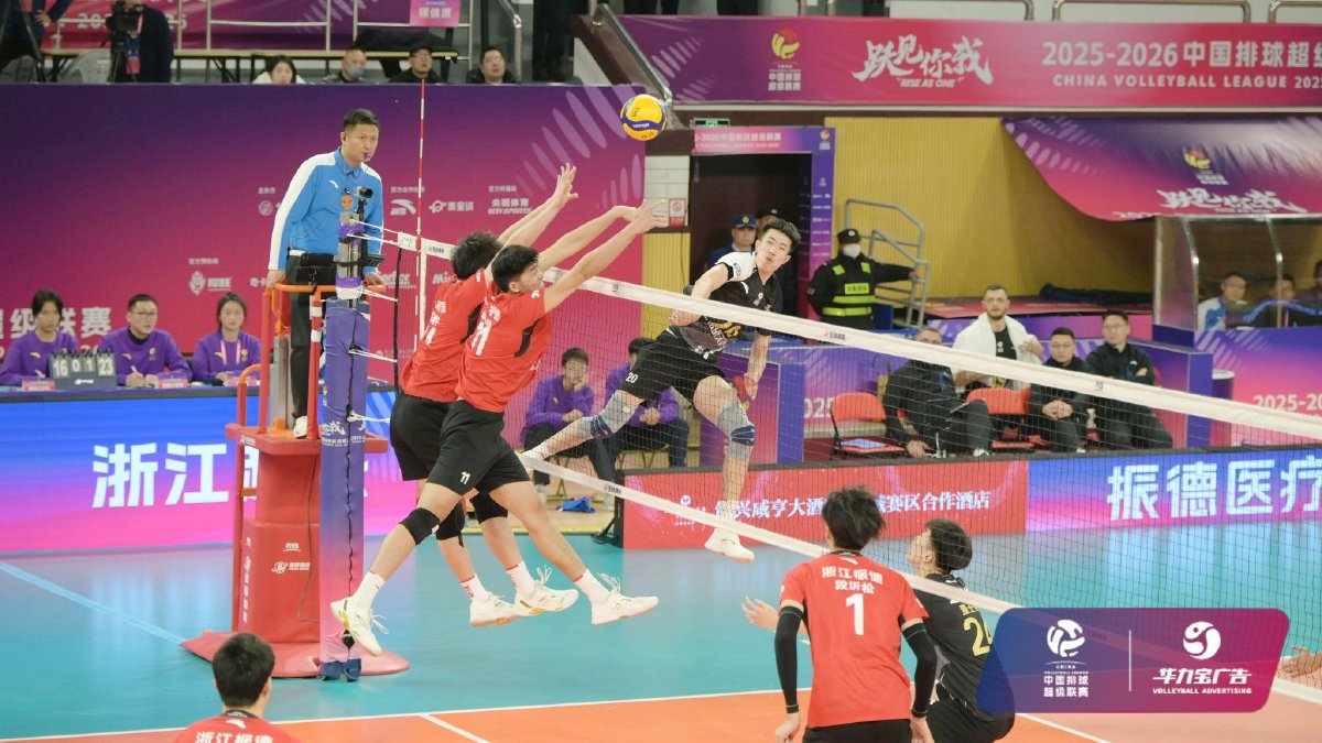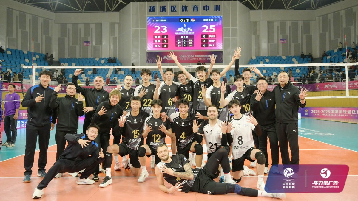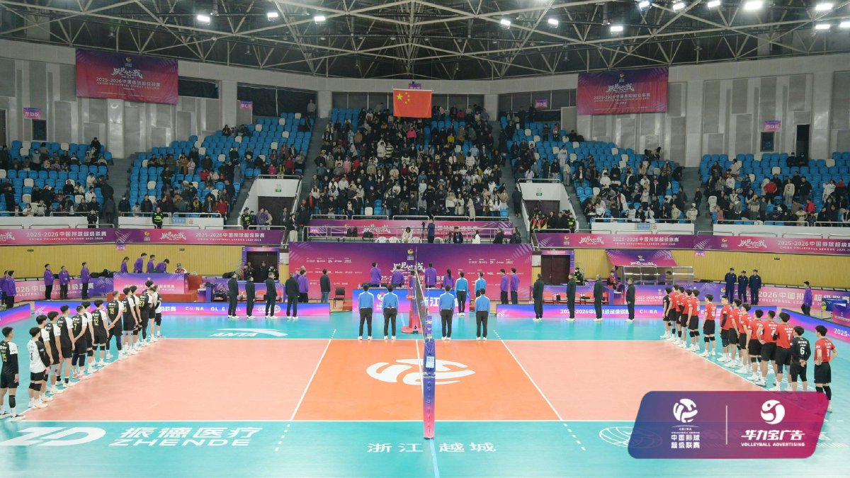 2026年1月4日,2025-2026中国男子排球超级联赛常规赛A级第六轮浙江振德男排与保定沃隶男排的比赛在浙江省绍兴市越城区体育中心体育馆结束。浙江振德男排主场0比3负于保定沃隶男排,三局比分为22比25、17比25、23比25。