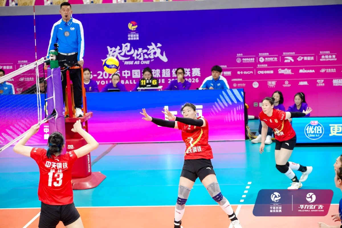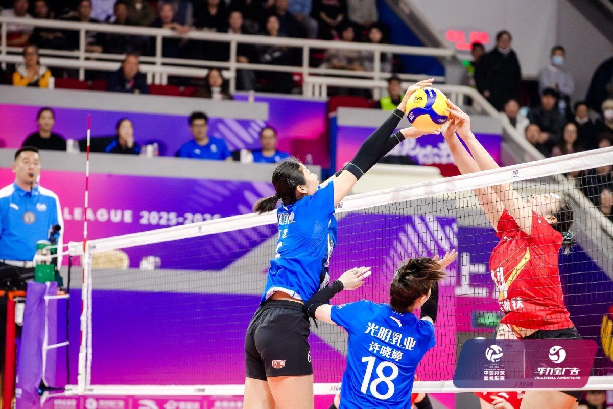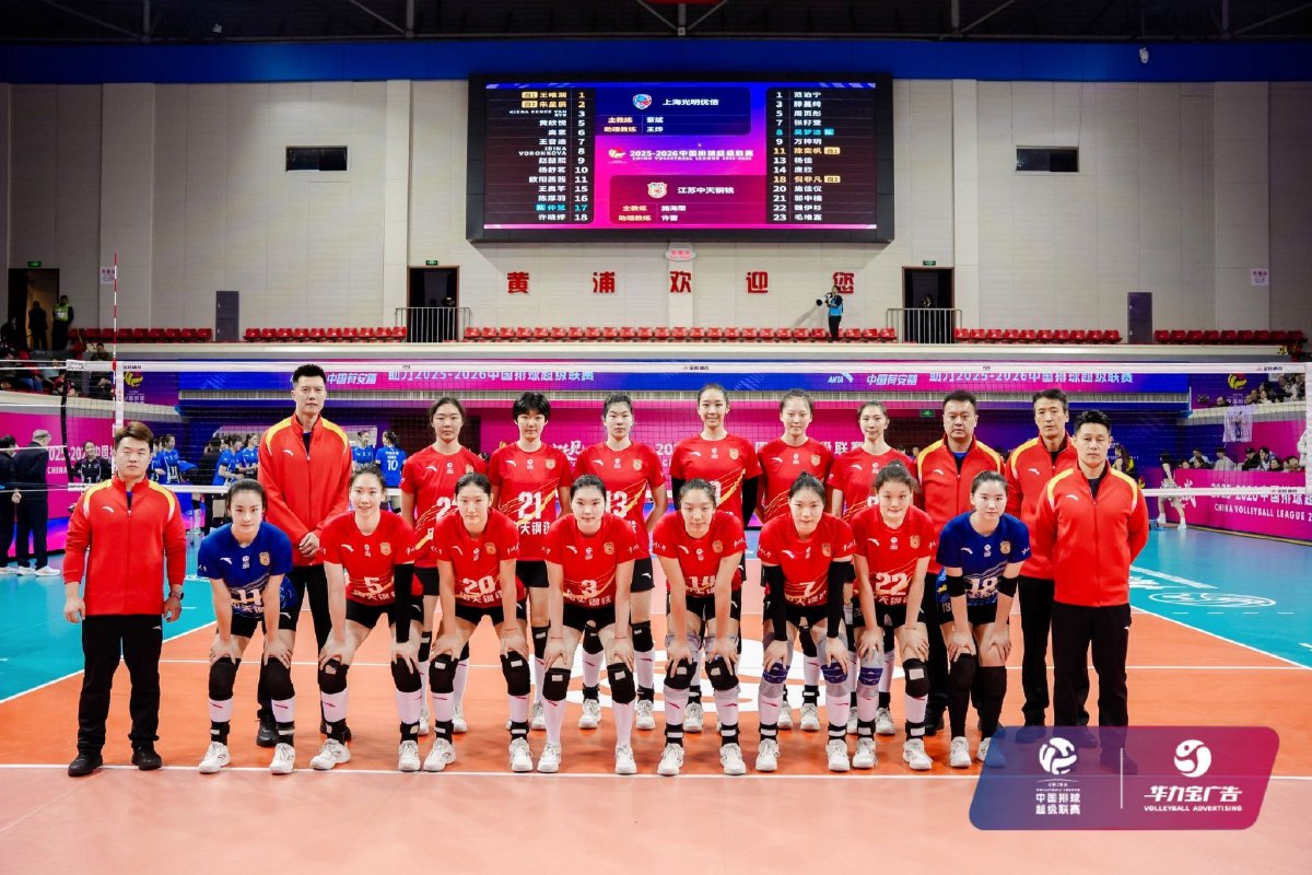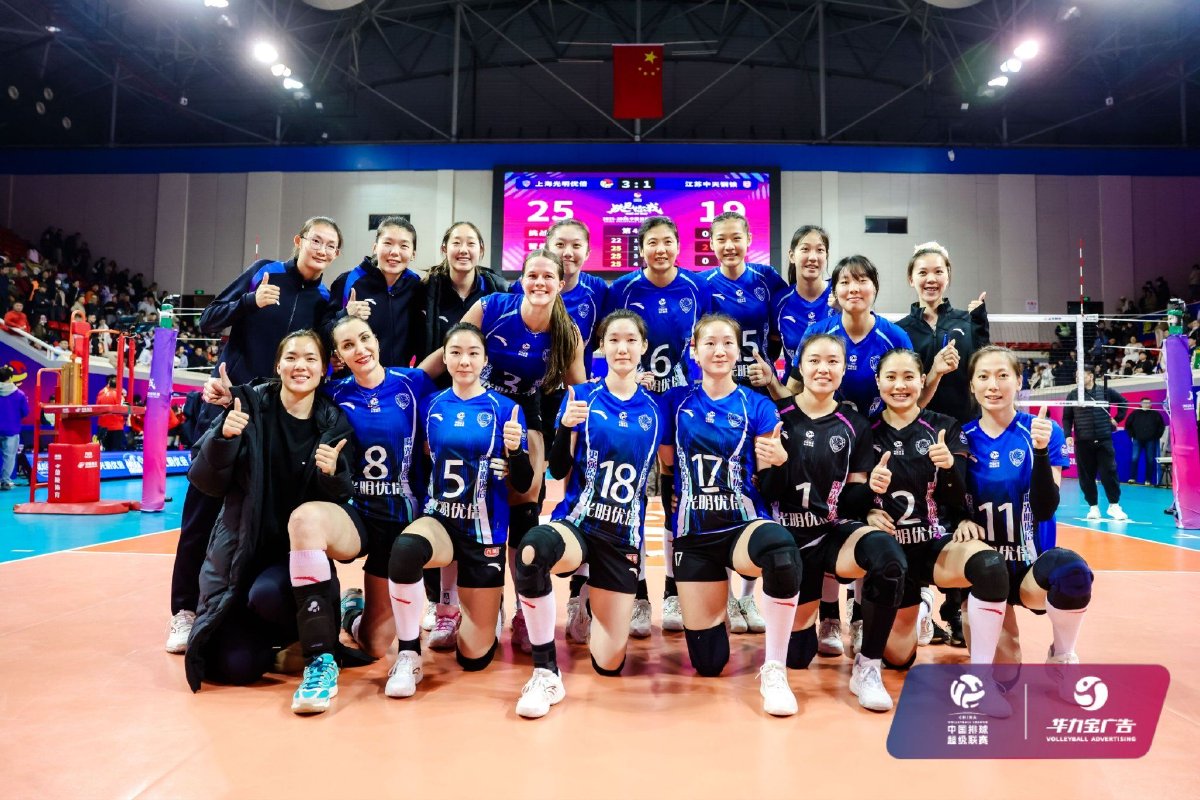 2026年1月14日晚,2025-2026中国女子排球超级联赛常规赛A级第九轮第36场比赛在上海市卢湾体育馆结束。经过四局激战,上海光明优倍女排主场3比1战胜江苏中天钢铁女排,四局比分为22比25、25比19、25比17、25比19。