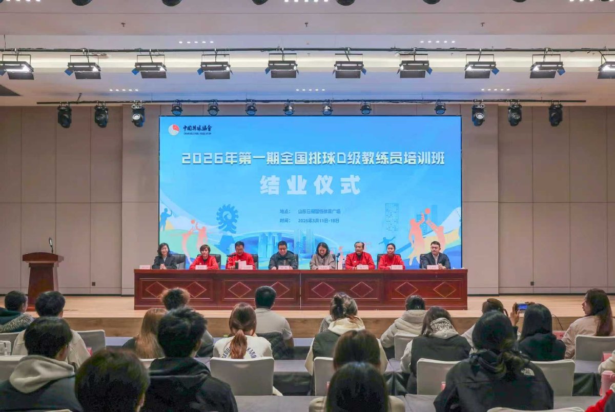 3月18日下午,由中国排球协会主办的2026年全国排球D级教练员培训班首期在山东日照圆满举行。本次培训既是中国排协全新教练员分级体系落地后的首期全国基层培训,也是2026年度教练员培养工作的开篇之举。经过7天系统培训,来自全国各地的100名基层学员全程完成课程学习与考核,全员顺利通过理论与实践测试,成功取得中国排协D级排球教练员执教证书。