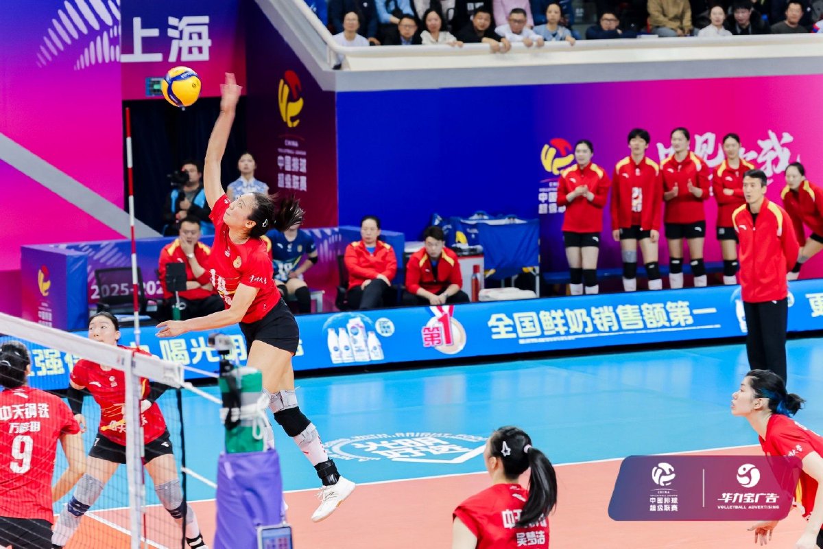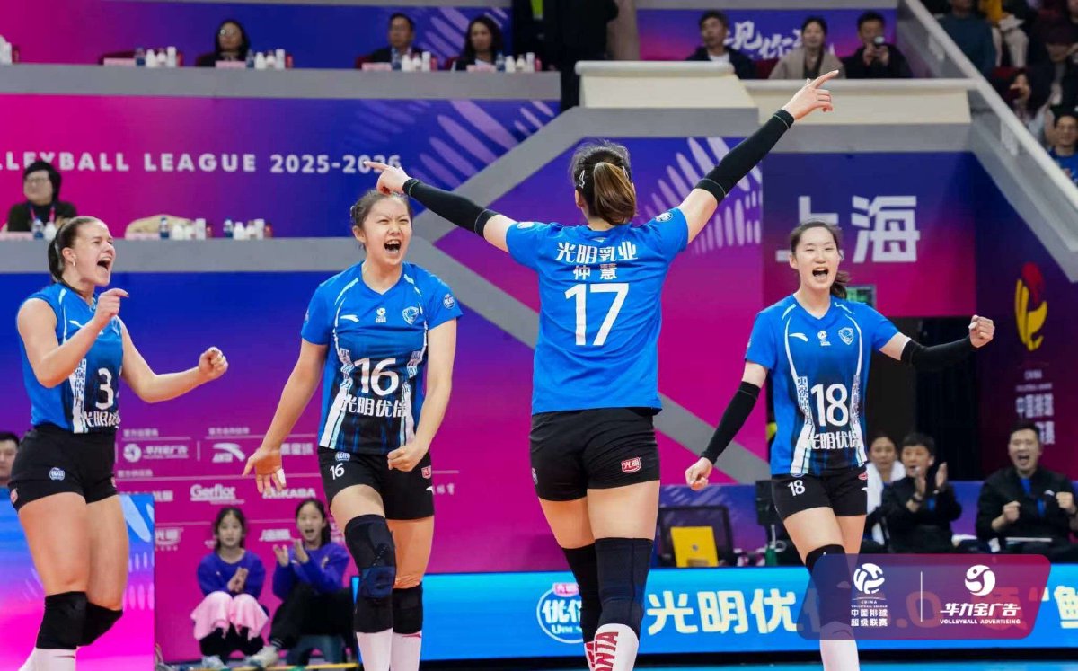 2026年3月31日晚,2025-2026中国女子排球超级联赛冠亚军决赛次回合比赛在上海市卢湾体育馆结束。经过三局激战,上海光明优倍女排主场3比0战胜江苏中天钢铁女排,三局比分为25比20、25比23、25比15。双方在三场两胜制的系列赛中各胜一场打成平手,将通过第三回合较量决定冠军归属。