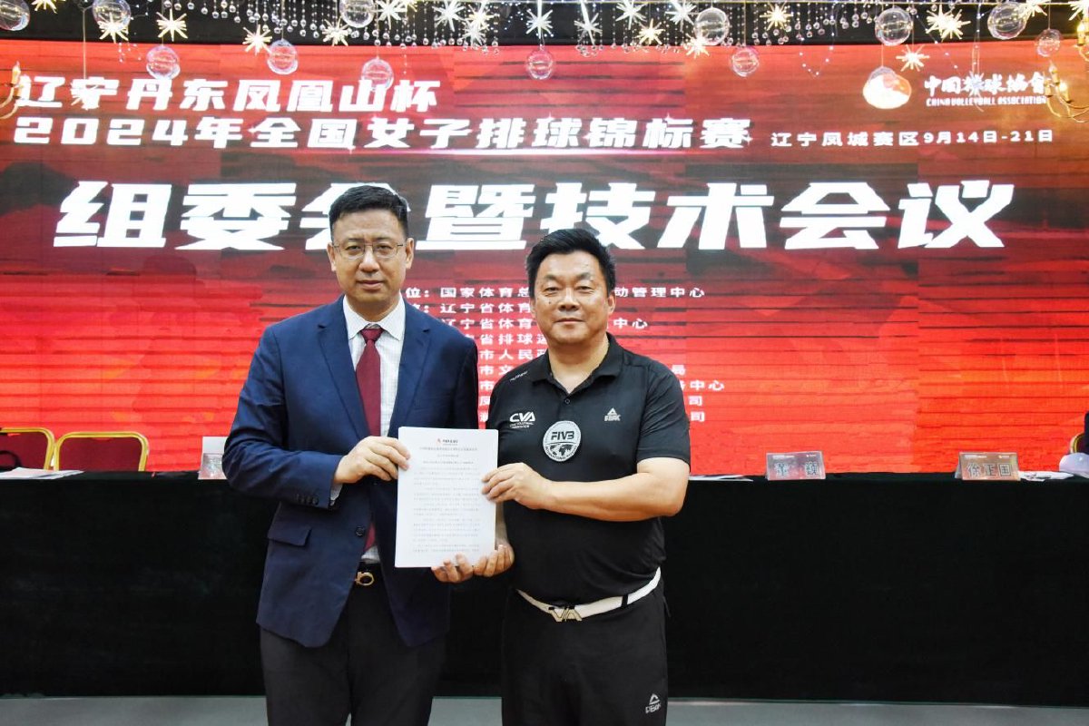 9月13日晚,2024 年全国女子排球锦标赛组委会暨技术会议在凤城宾馆会议室召开。赛区管委会成员及各代表队领队、教练、裁判员,和赛区相关工作人员参加了会议,会议由赛区管委会主任李琛主持。会上,凤城市文化旅游和广播电视局副局长、体育局局长张显明代表凤城市致欢迎辞。辽宁省体育事业发展中心主任岳伟代表辽宁省体育局欢迎各支运动队到辽宁来参赛。管委会的仲裁委员、裁判委员和技术委员分别就赛风赛纪,体育道德风尚奖评选,申诉办法和程序,裁判规则及执行,训练安排,公报发送等方面作出明确说明。管委会主任李琛传达了国家体育总局《关于深入学习贯彻习近平总书记接见中国奥运代 表团时重要讲话精神的通知》和习近平总书记接见时的讲话。全体裁判员签署了廉洁自律和公正执裁承诺书。各运动队签署了赛风赛纪和反兴奋剂工作责任书。裁判员代表和各运动队领队向国家体育总局排管中心副主任盖洋递交了承诺书。