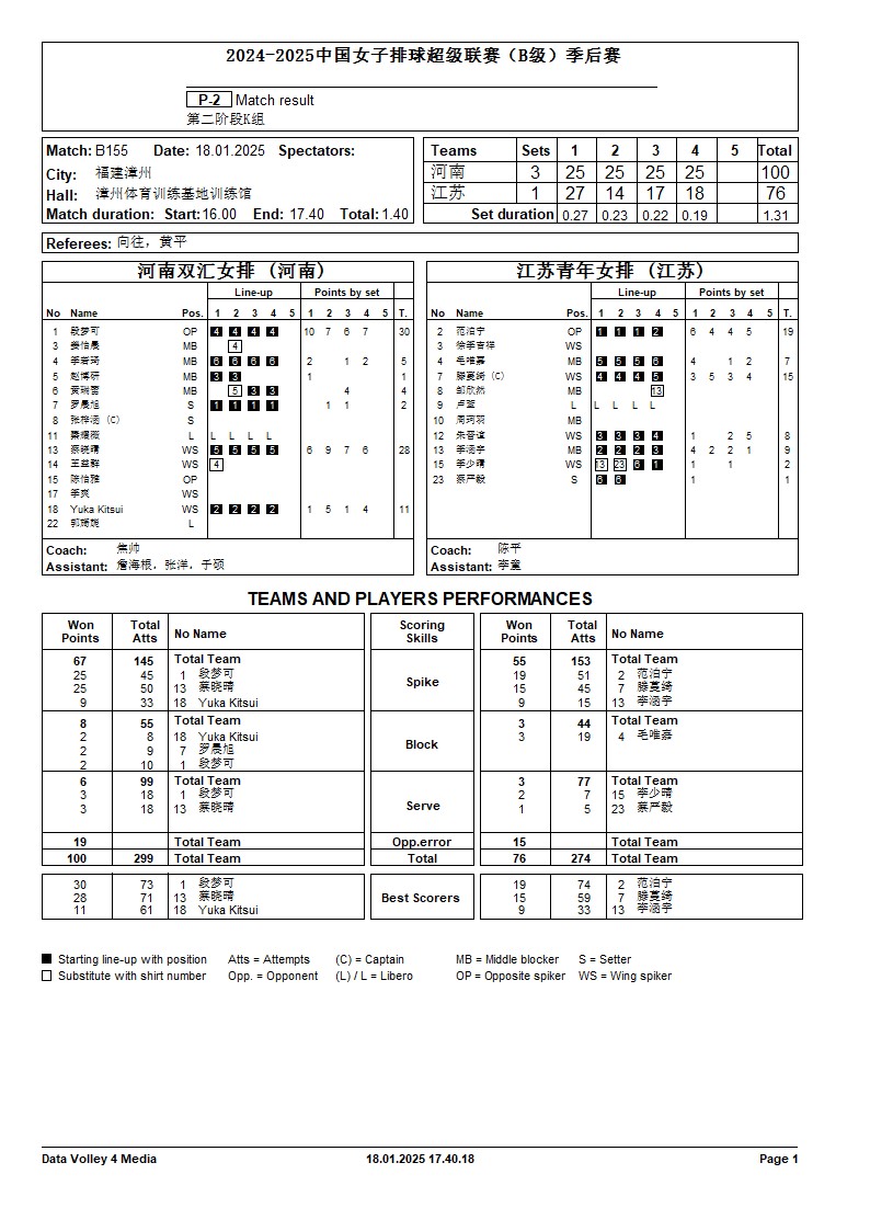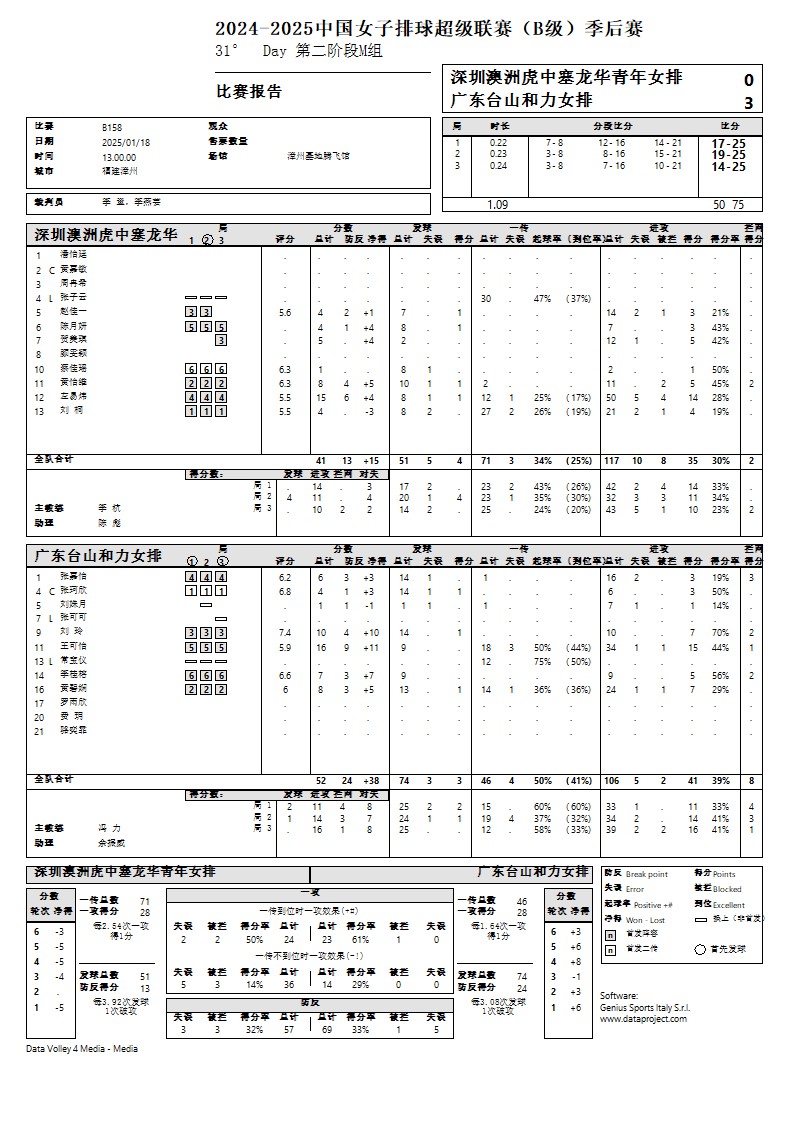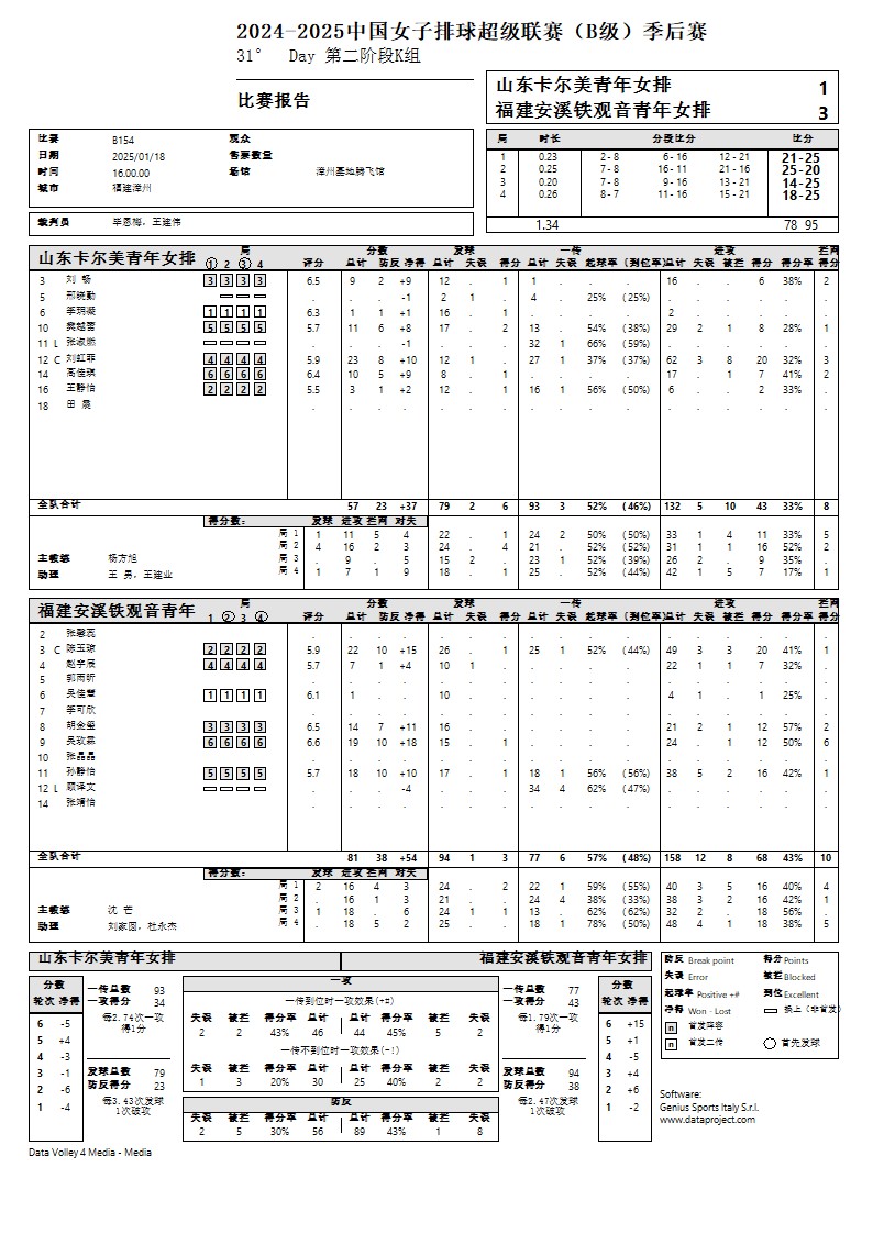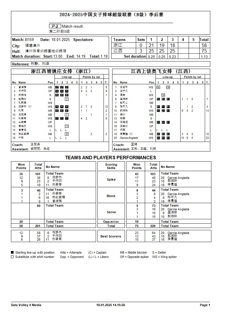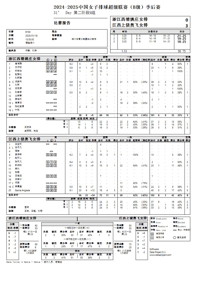 2024-2025中国女子排球超级联赛B级季后赛18号公告