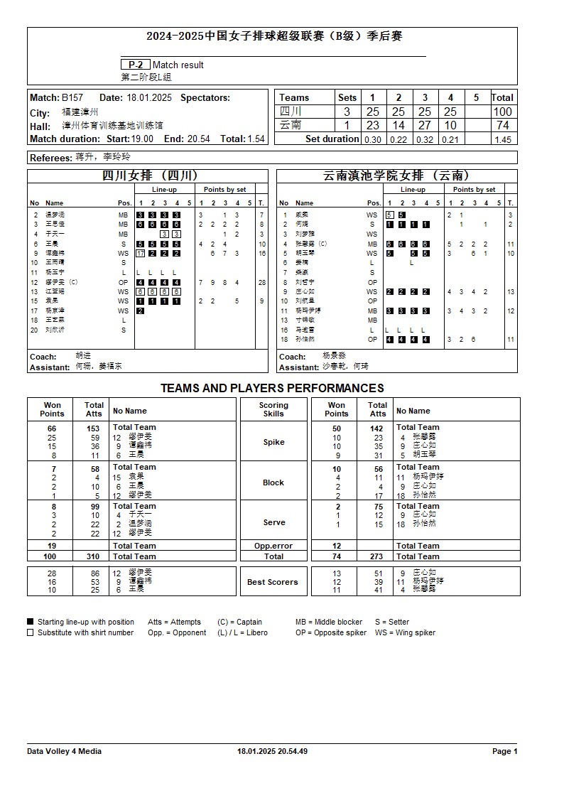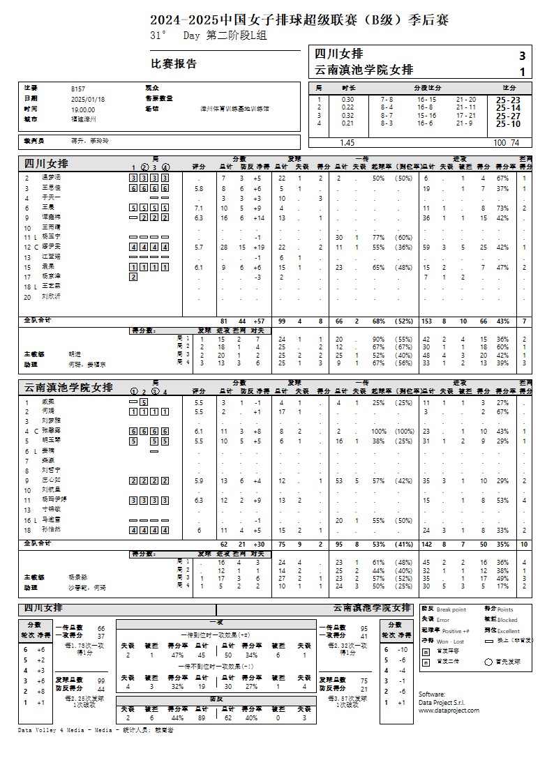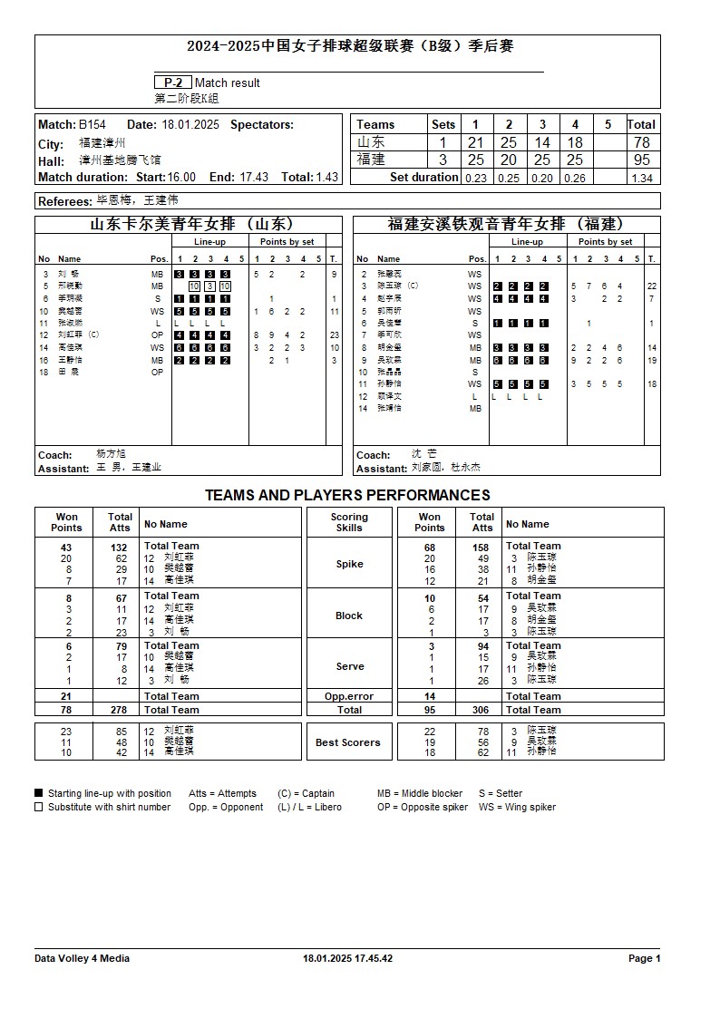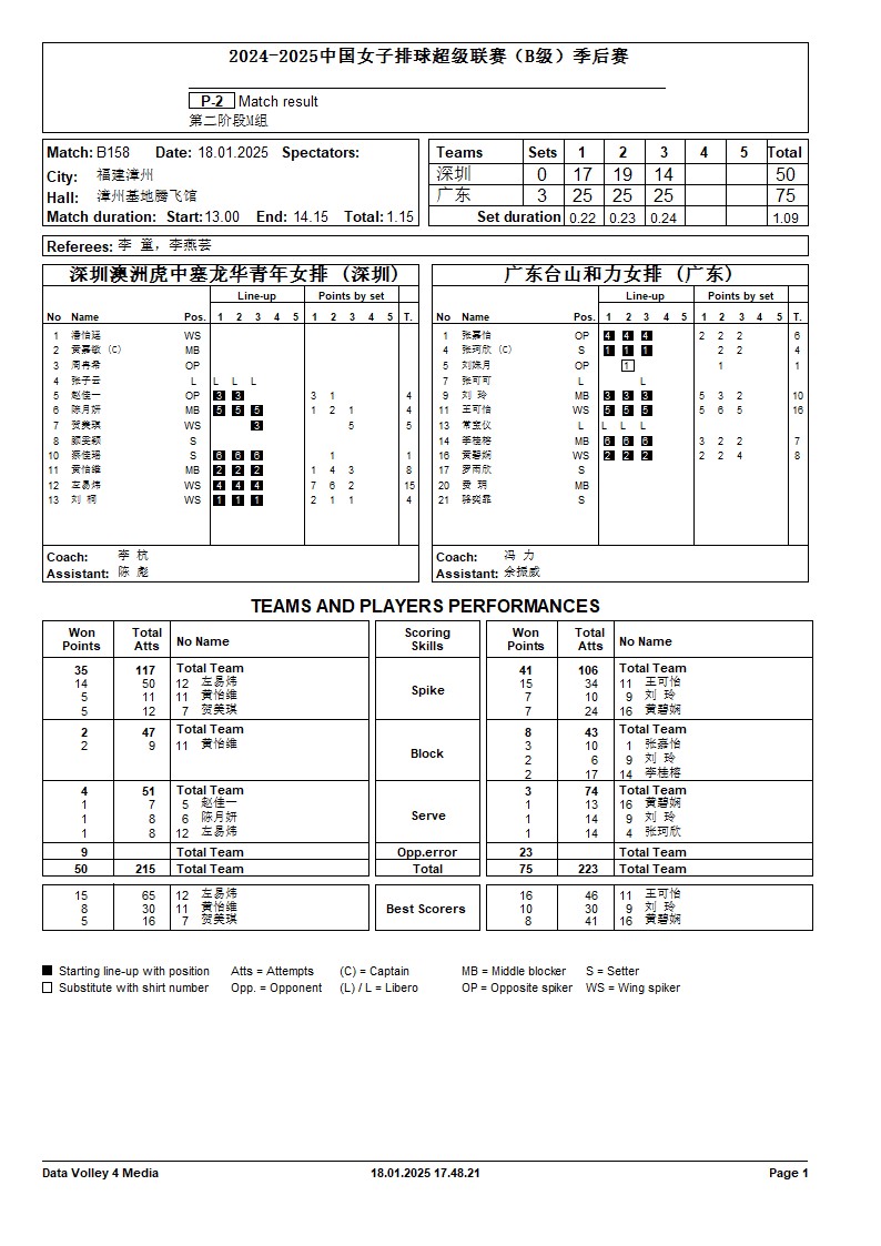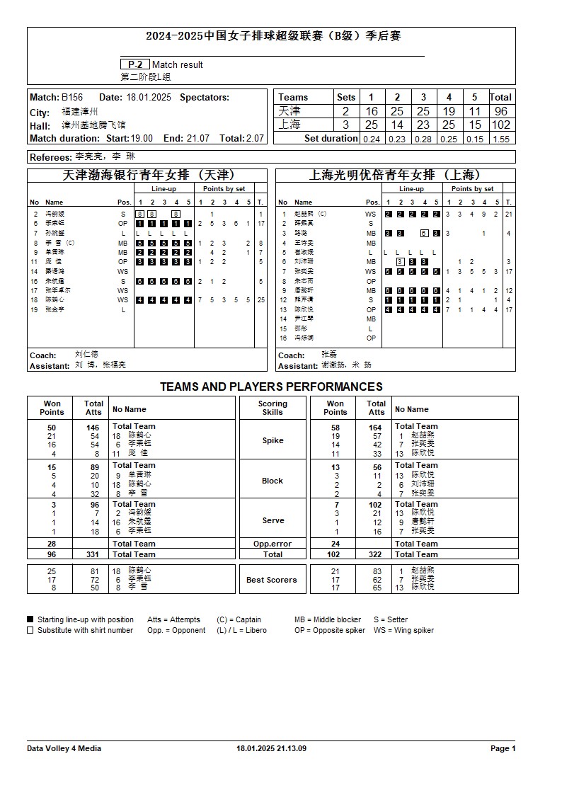 2024-2025中国女子排球超级联赛B级季后赛18号公告