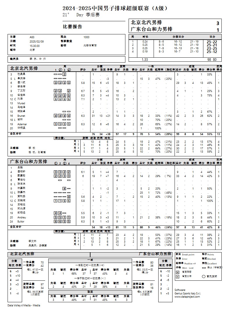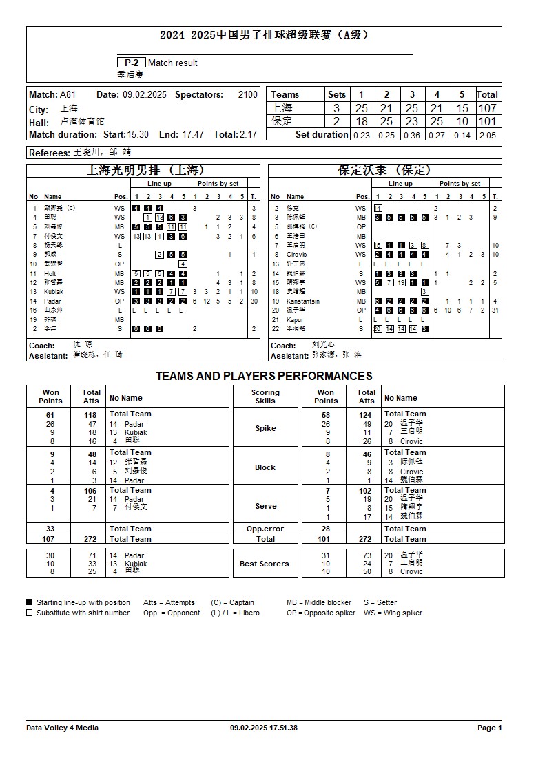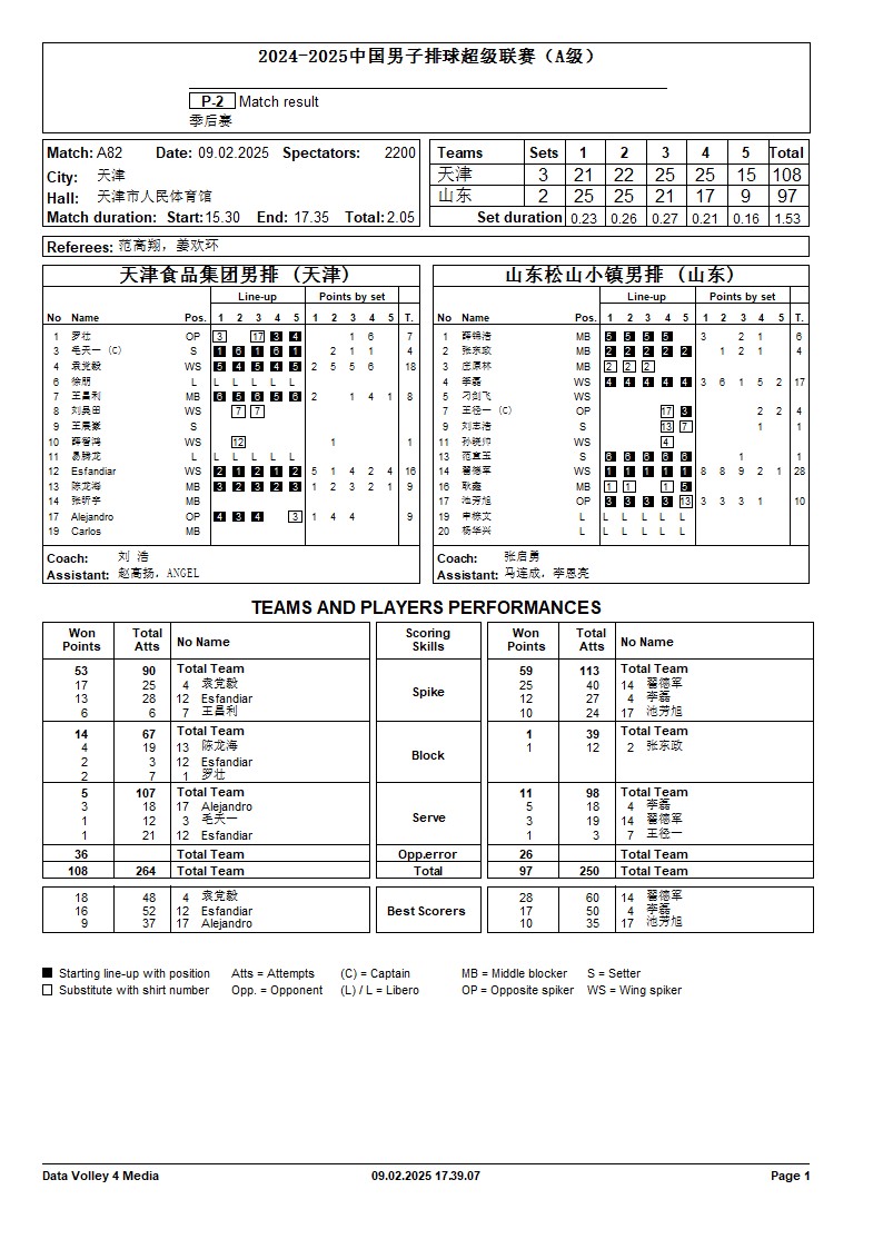 2024-2025中国男子排球超级联赛A级季后赛7号公告