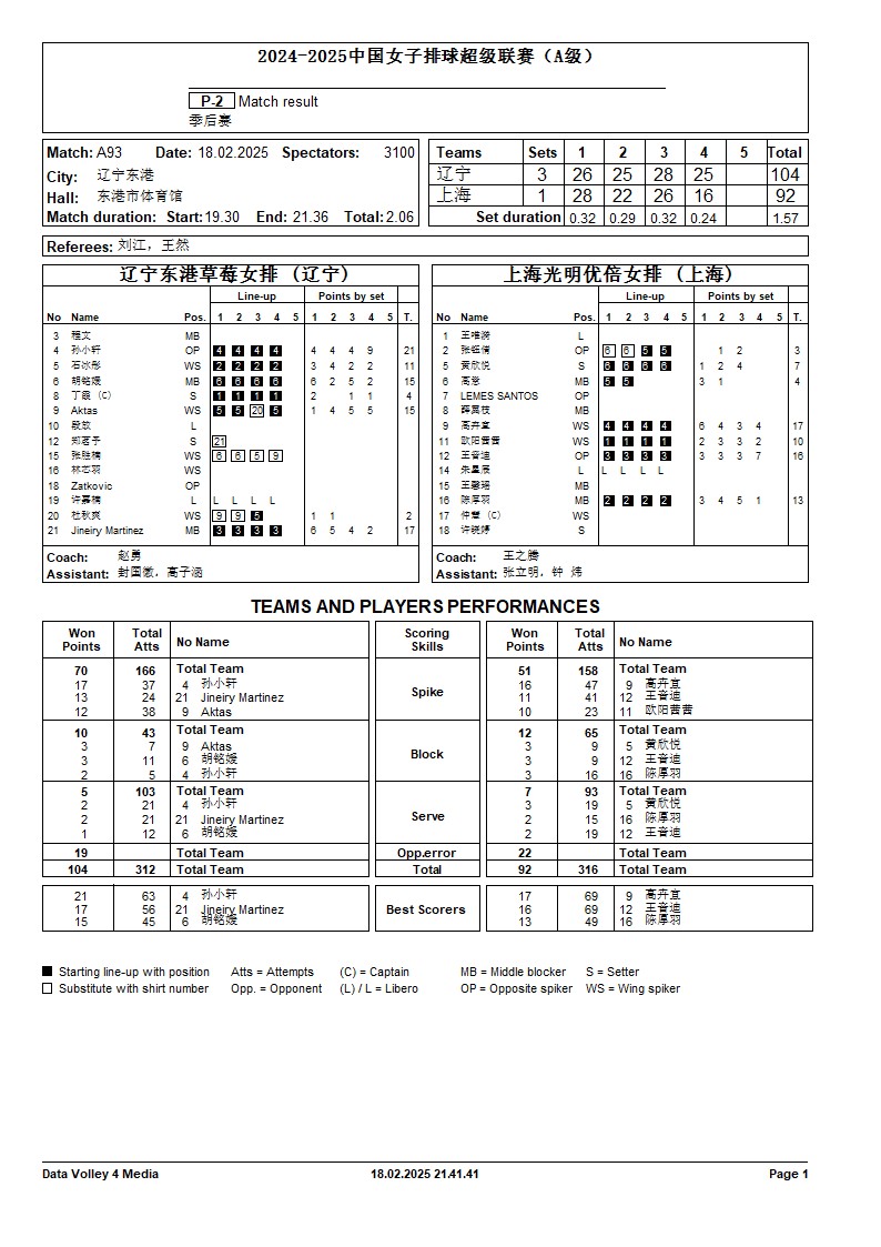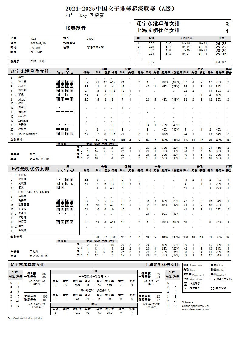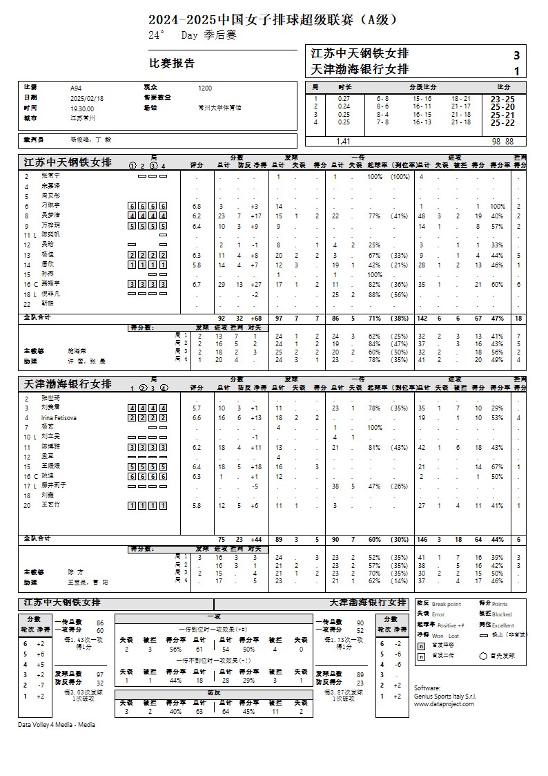 2024-2025中国女子排球超级联赛A级季后赛10号公告