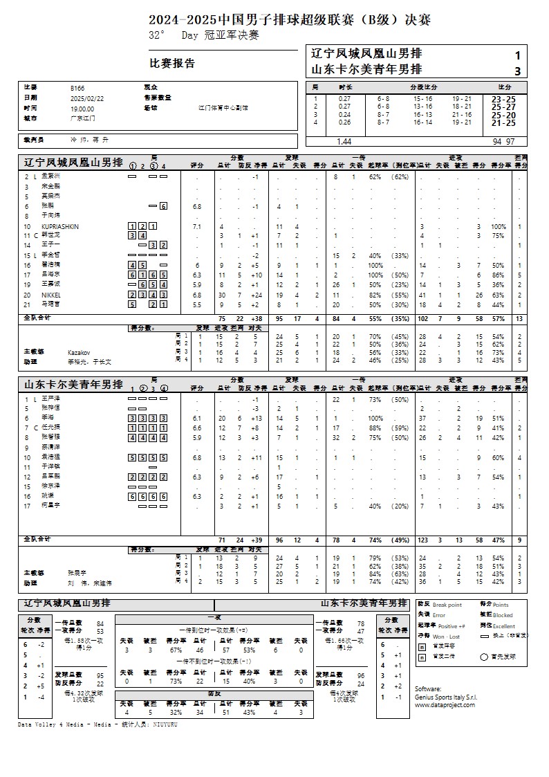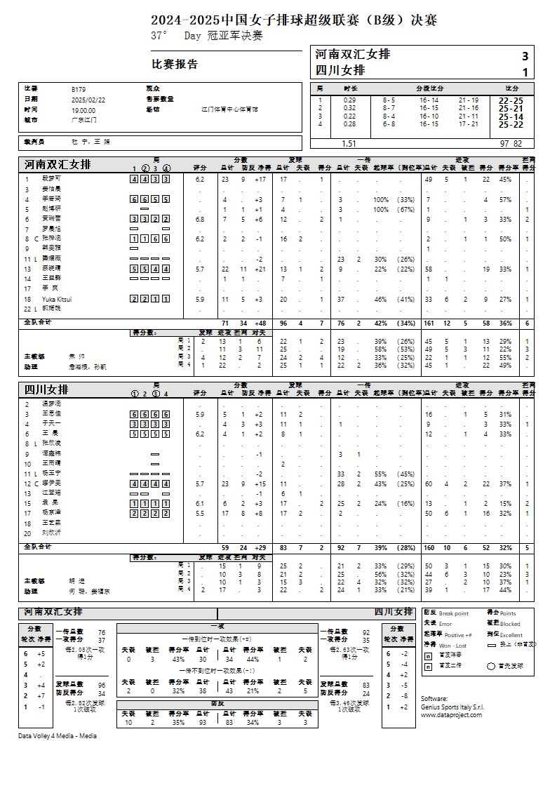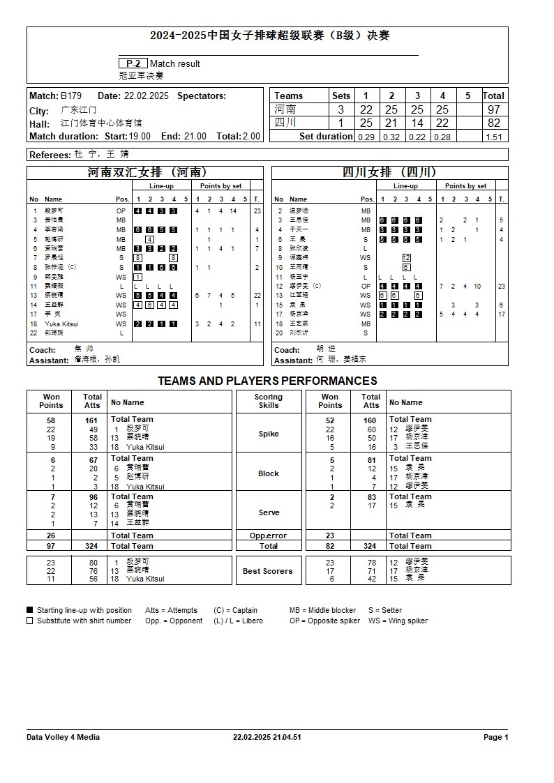 2024-2025中国排球超级联赛B级决赛6号公告