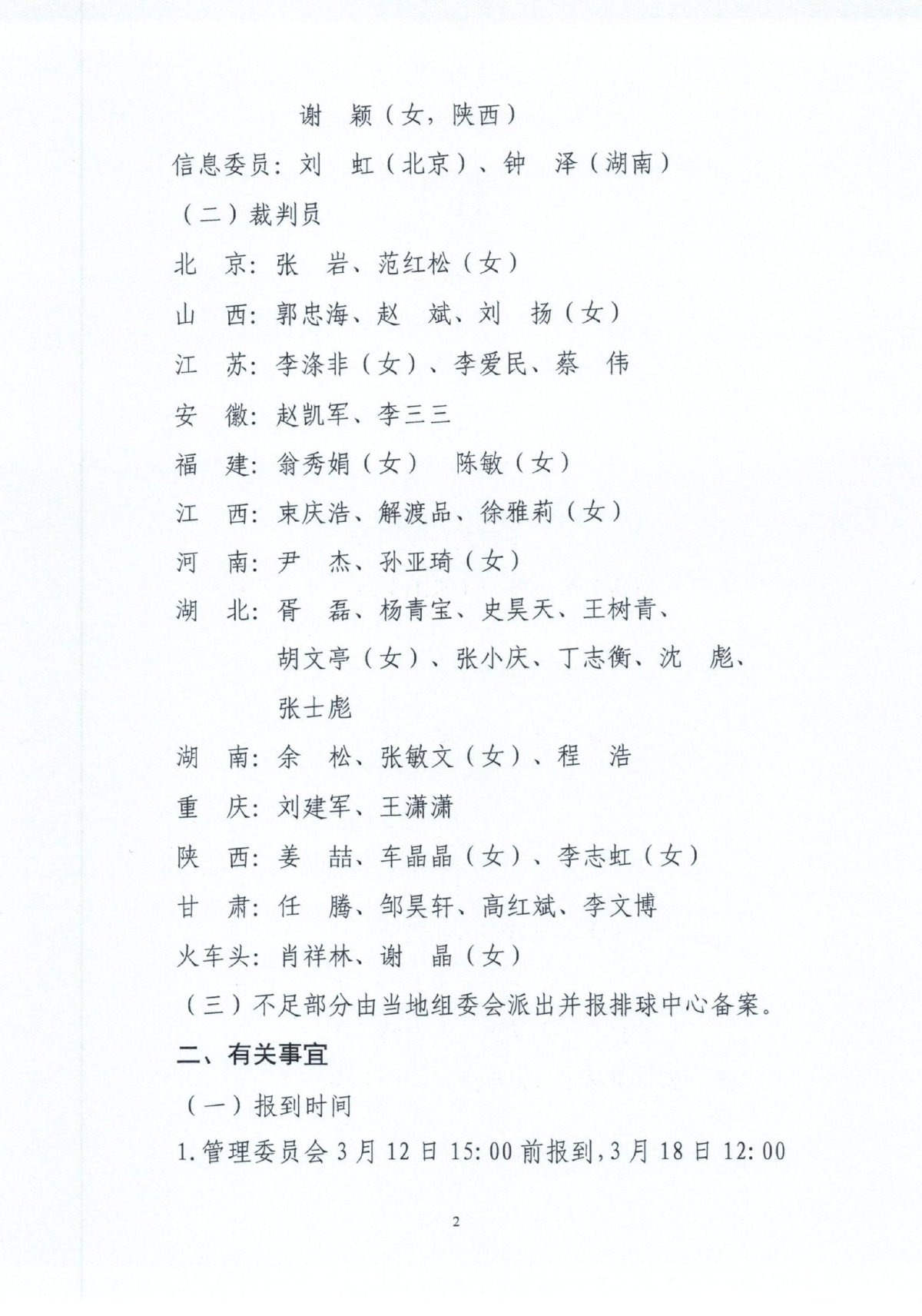 第十五届全国运动会气排球项目(女子中年组)预赛技术官员安排的通知
