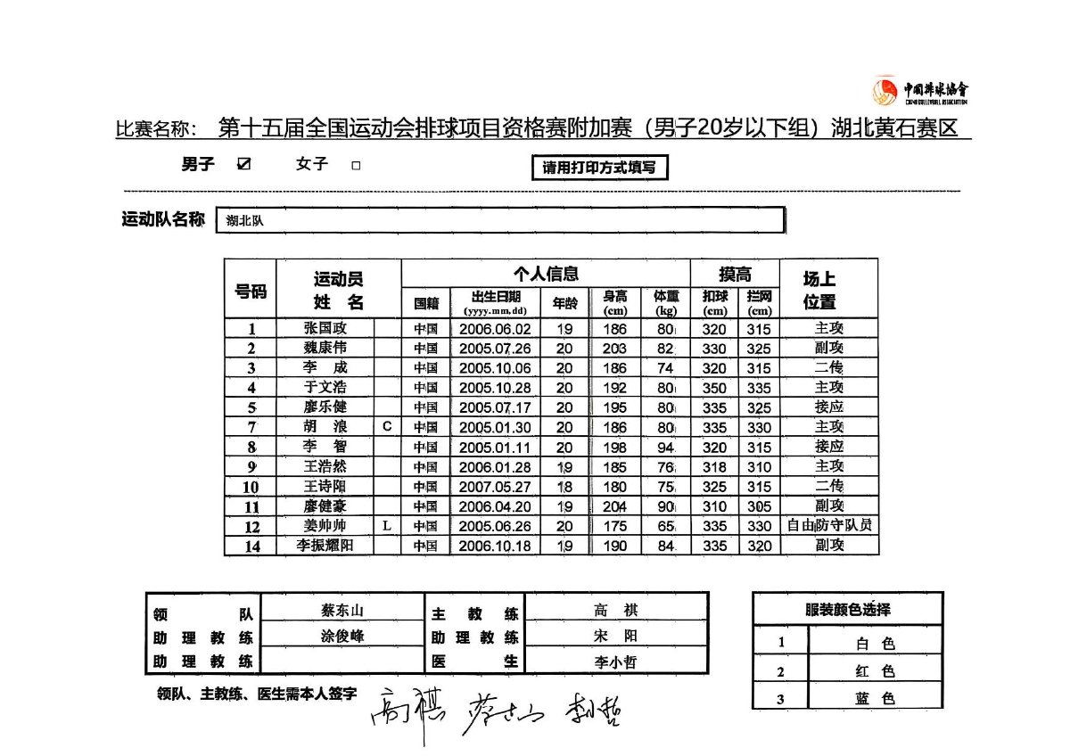 第十五届全国运动会排球项目资格赛附加赛男子20岁以下组1号公告