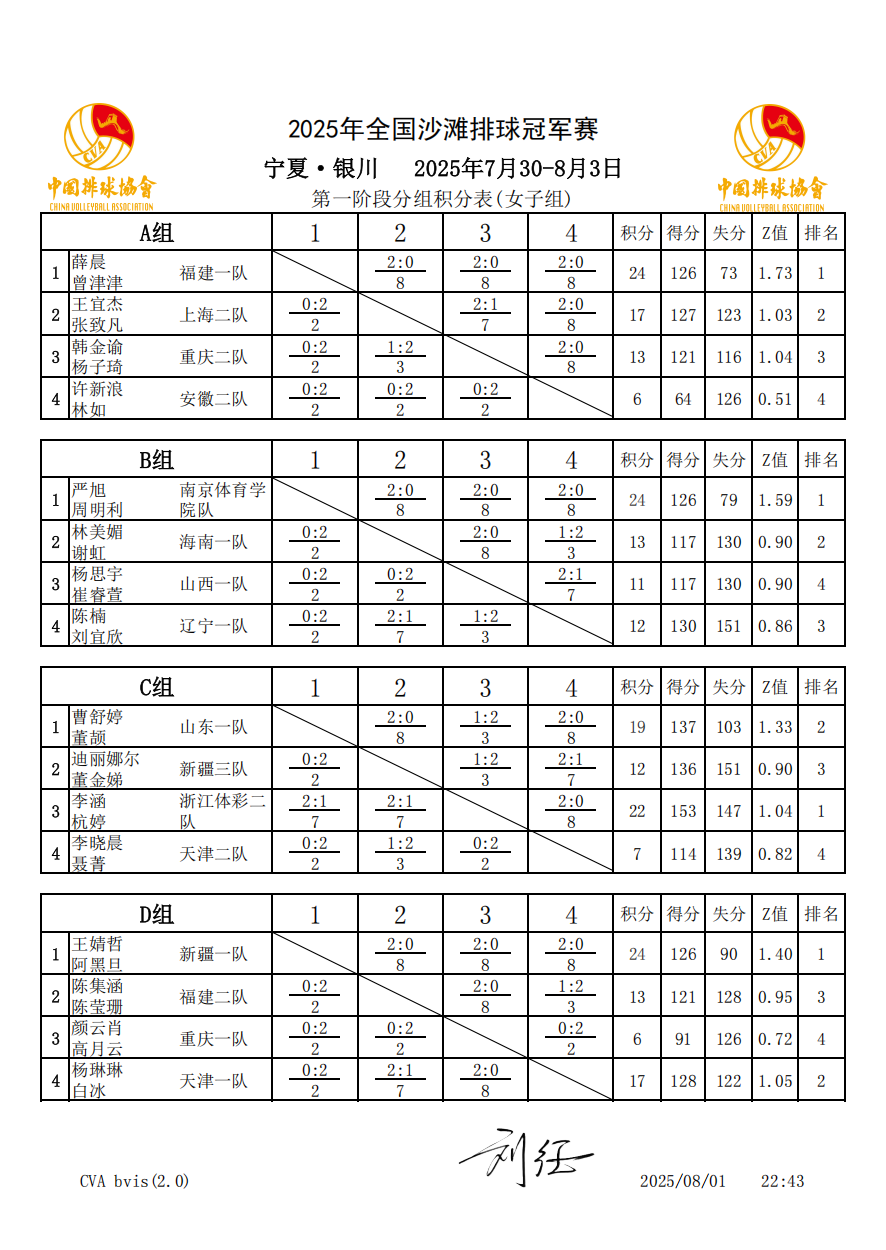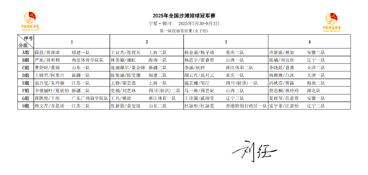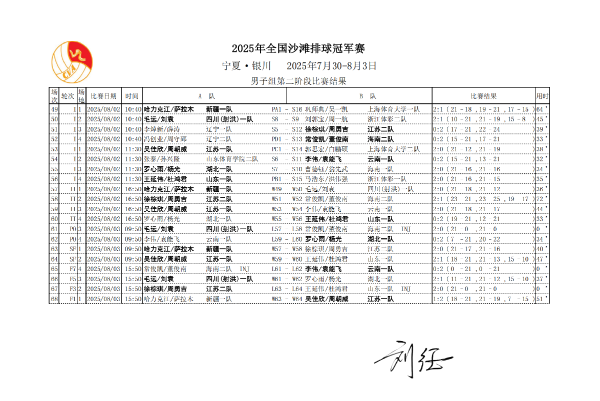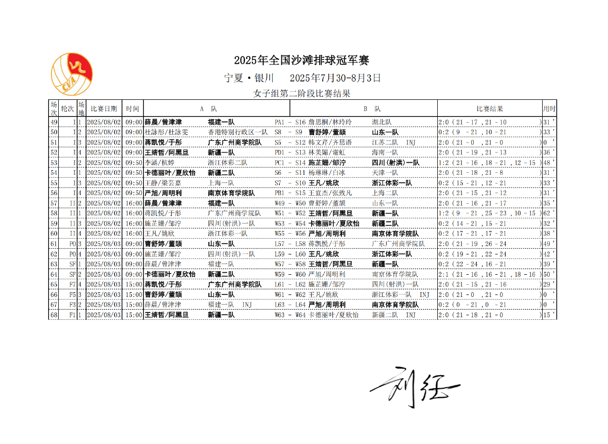 2025年全国沙滩排球冠军赛宁夏银川站暨十五运会资格赛成绩