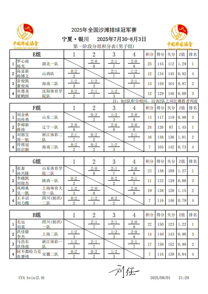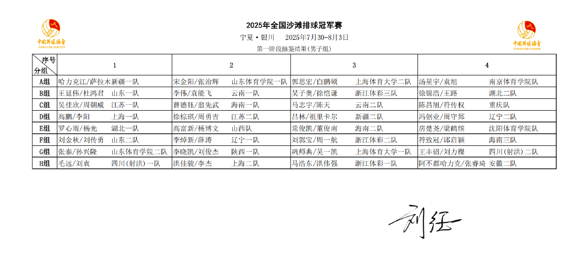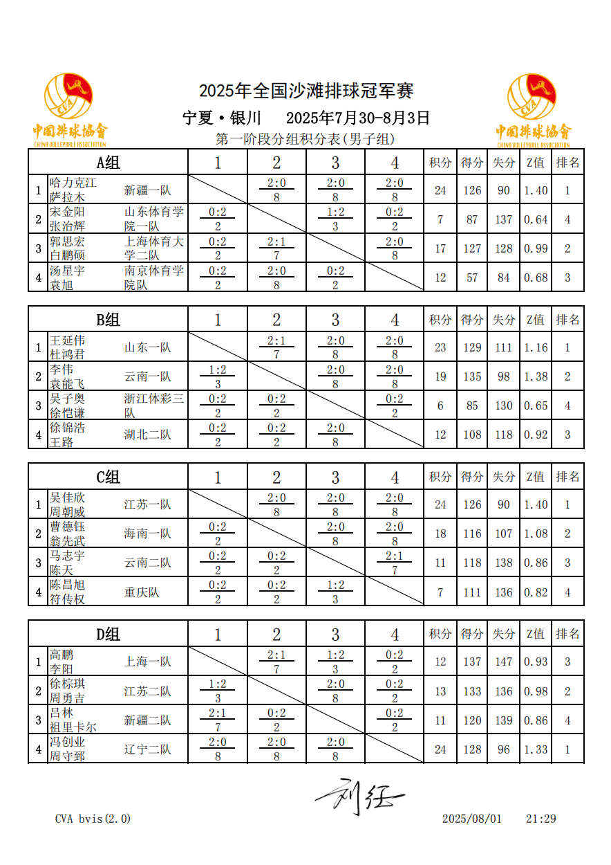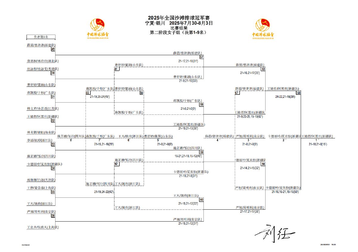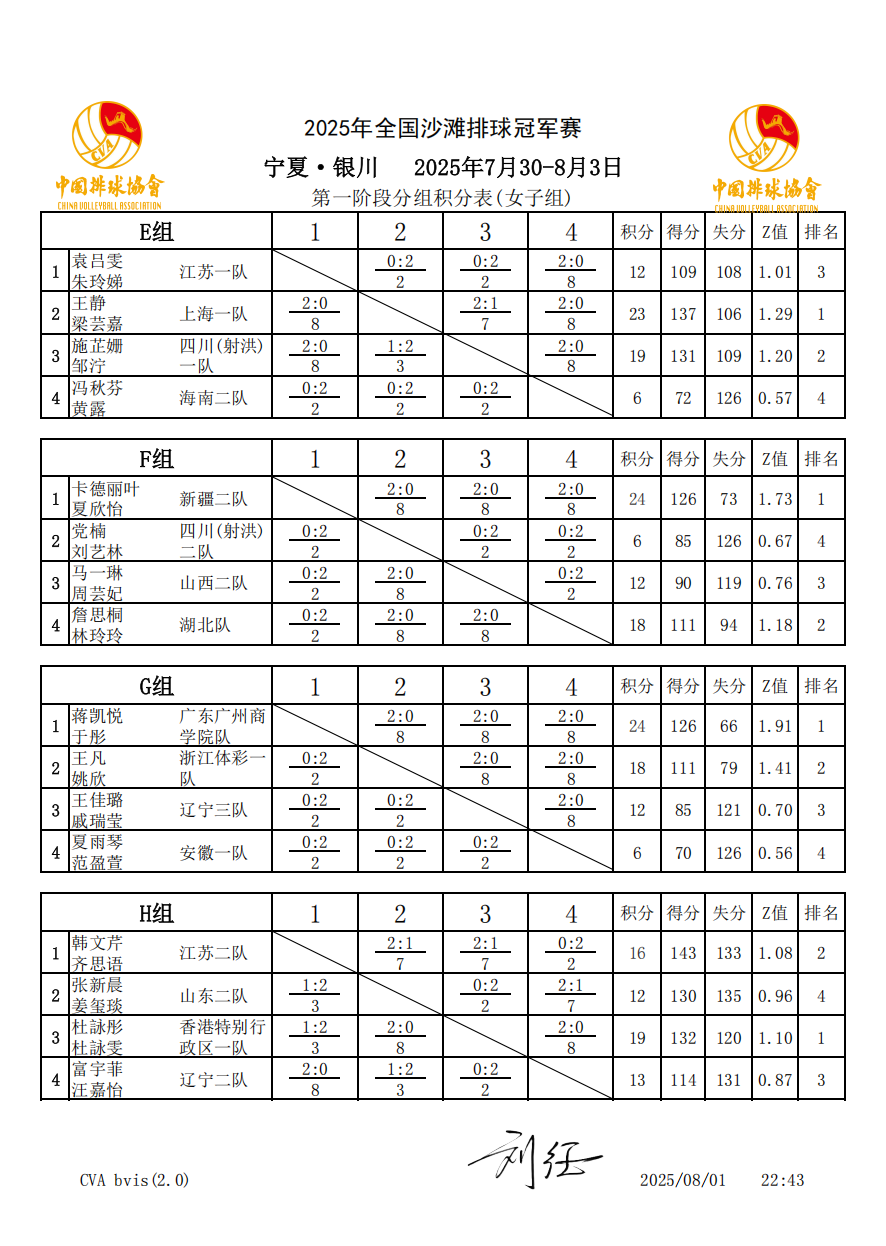 2025年全国沙滩排球冠军赛宁夏银川站暨十五运会资格赛成绩