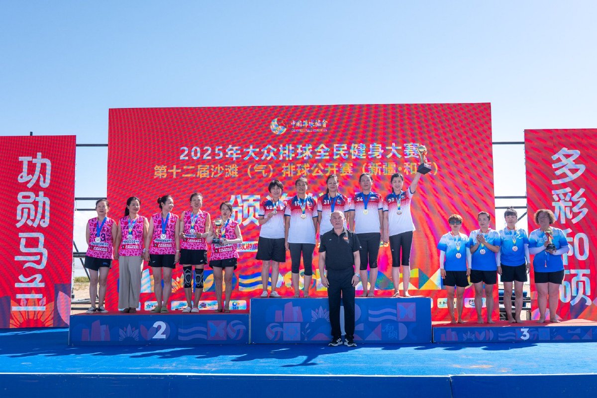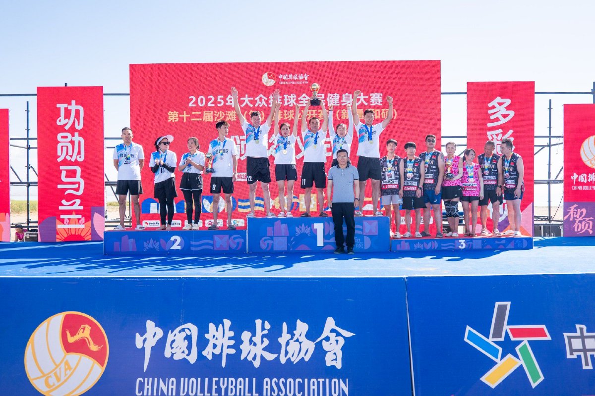 8月3日下午,2025年大众排球全民健身大赛·第十二届沙滩(气)排球公开赛在新疆和硕圆满收官。塔城地区队、新疆大众排球一队、塔城地区二队分别获得男子组、女子组、混合组第一名。