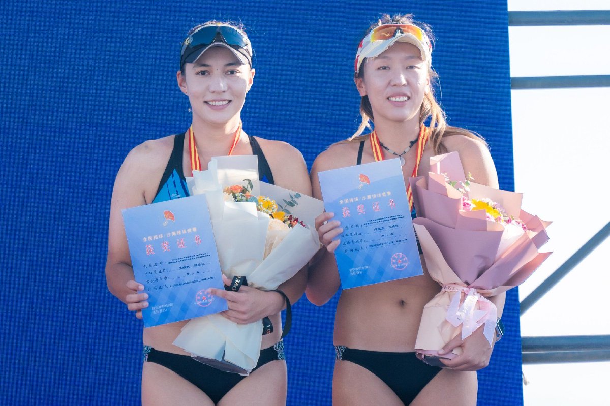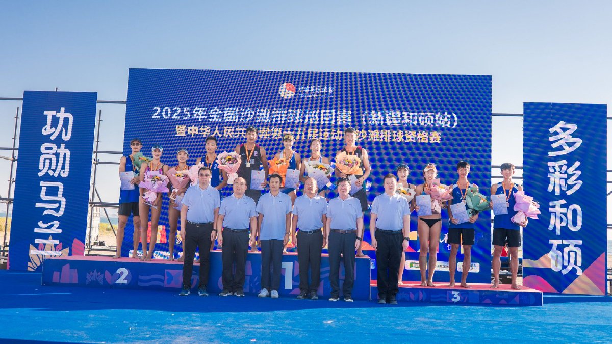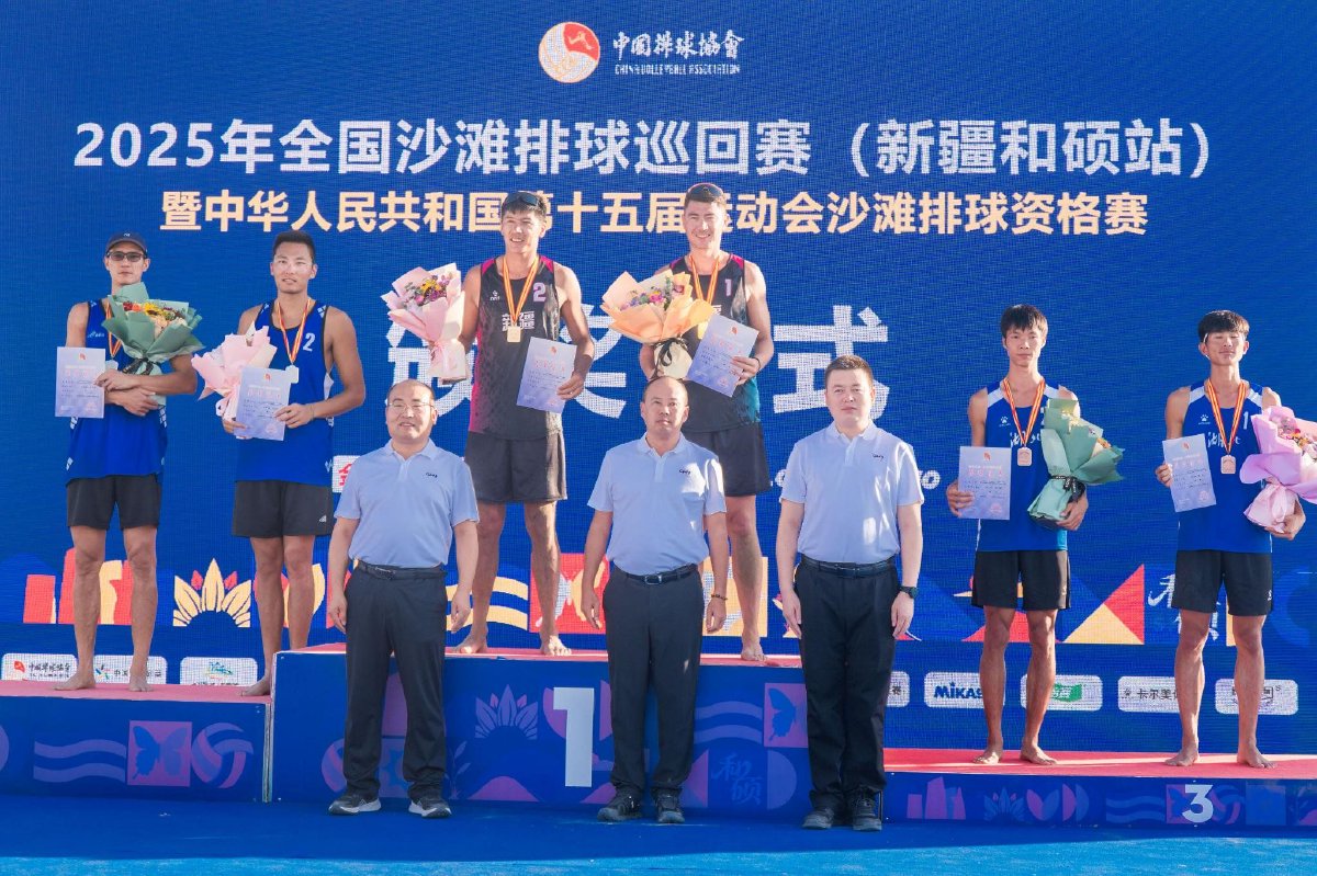 8月10日晚,2025年全国沙滩排球巡回赛新疆和硕站暨中华人民共和国第十五届运动会沙滩排球资格赛收官。经过五天激烈的角逐,新疆一队哈力克江/萨拉木斩获男子组冠军,山东一队曹舒婷/董颉收获女子组冠军。