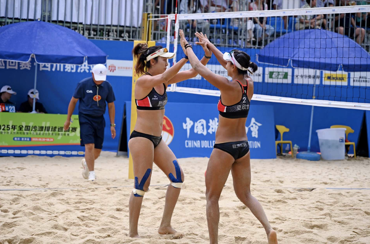在女子组冠亚军决赛的较量中,新疆一队王婧哲/夏欣怡在关键分的把握上更胜一筹,以2比0险胜福建一队薛晨/曾津津夺得冠军,两局比分为24比22、25比23。在季军争夺战中,新疆二队卡德丽叶/阿黑旦2比0战胜上海一队王静/梁芸嘉获得季军,两局比分为21比17、22比20。