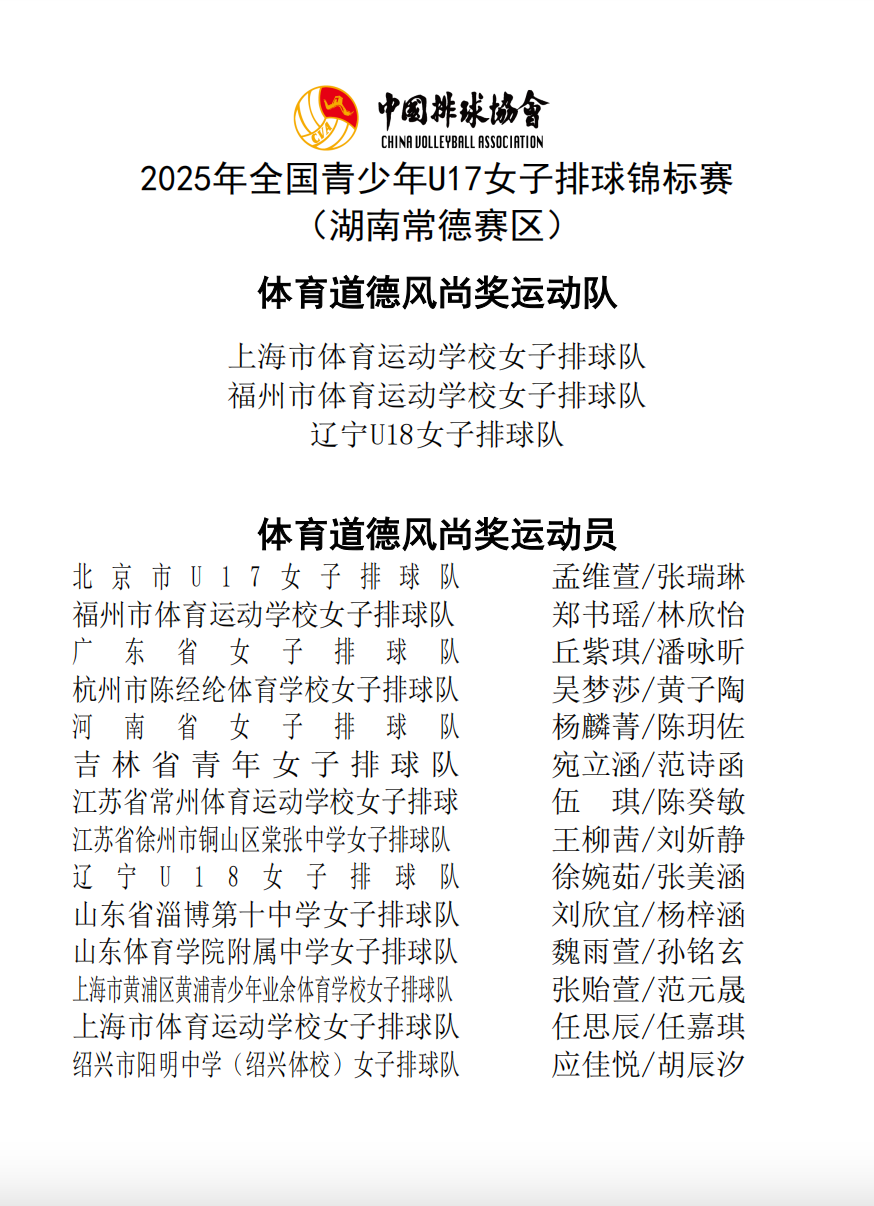 2025年全国青少年U17女子排球锦标赛10号公告