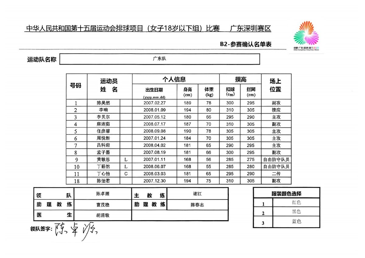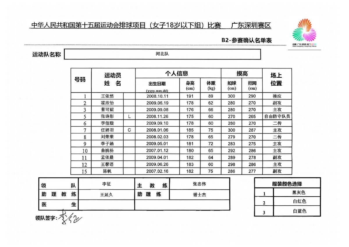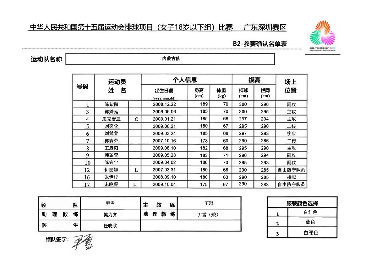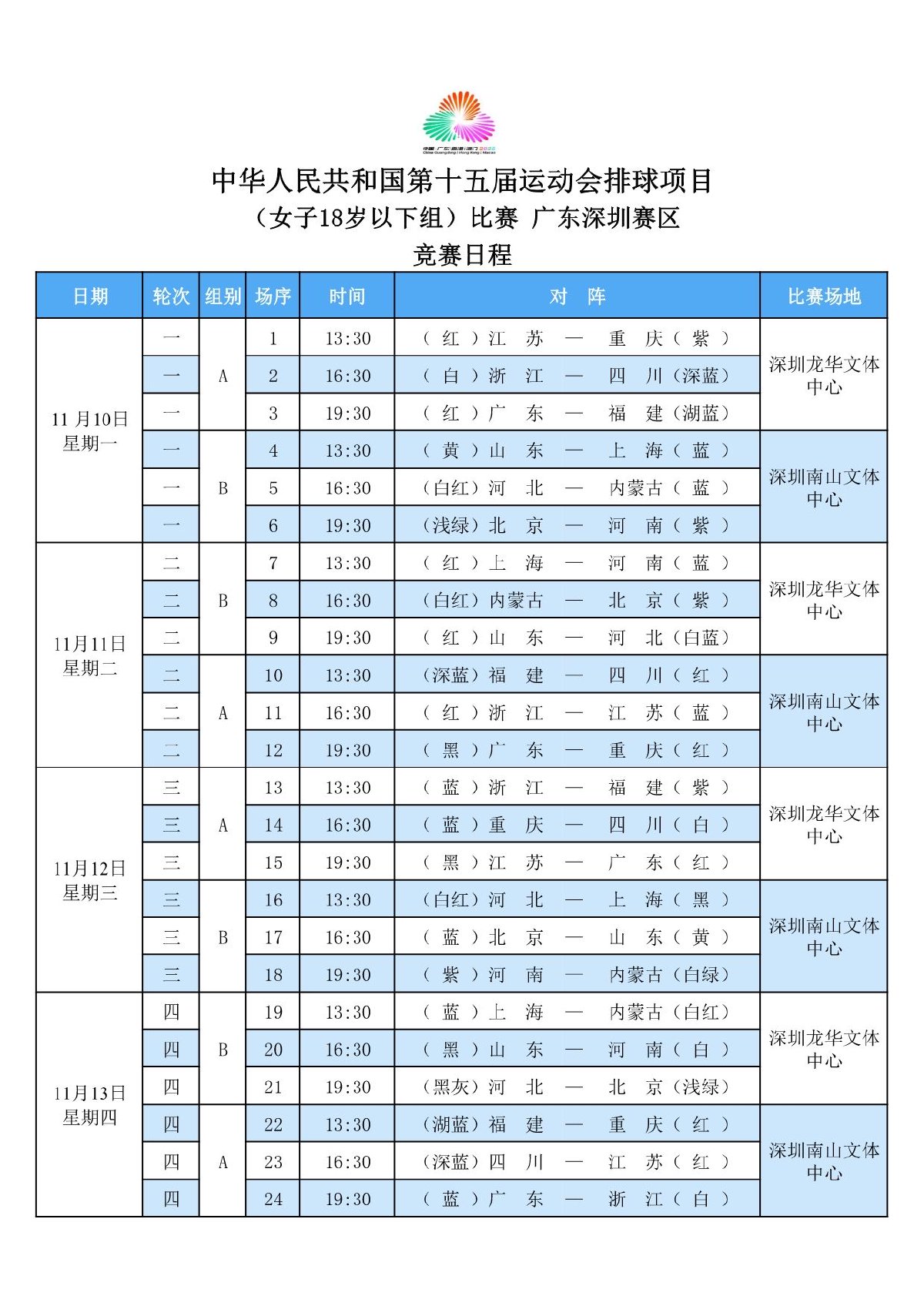 第十五届全国运动会排球项目(女子18岁以下组)比赛1号公告