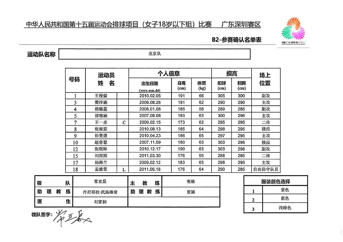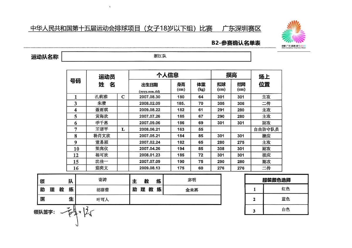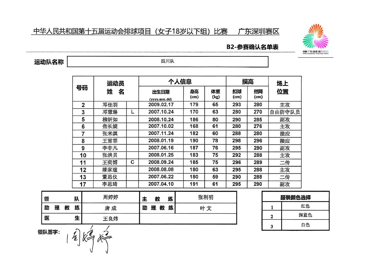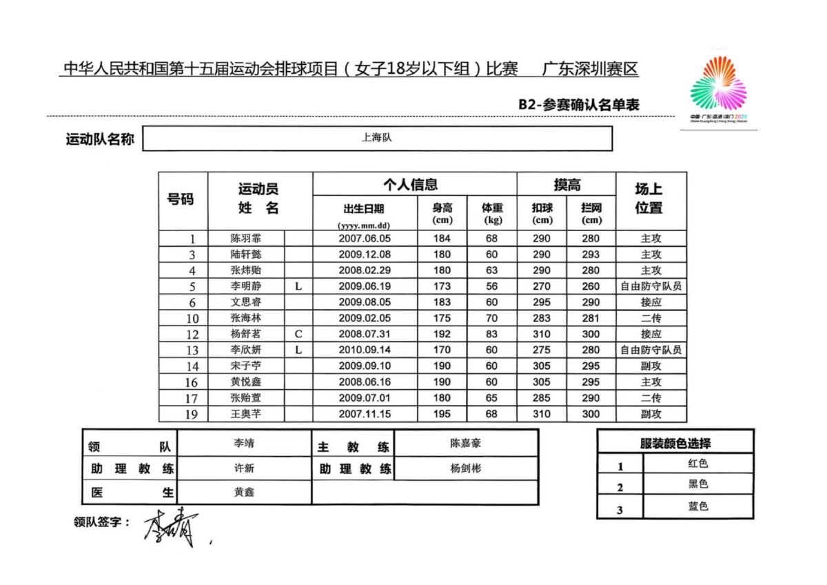 第十五届全国运动会排球项目(女子18岁以下组)比赛1号公告