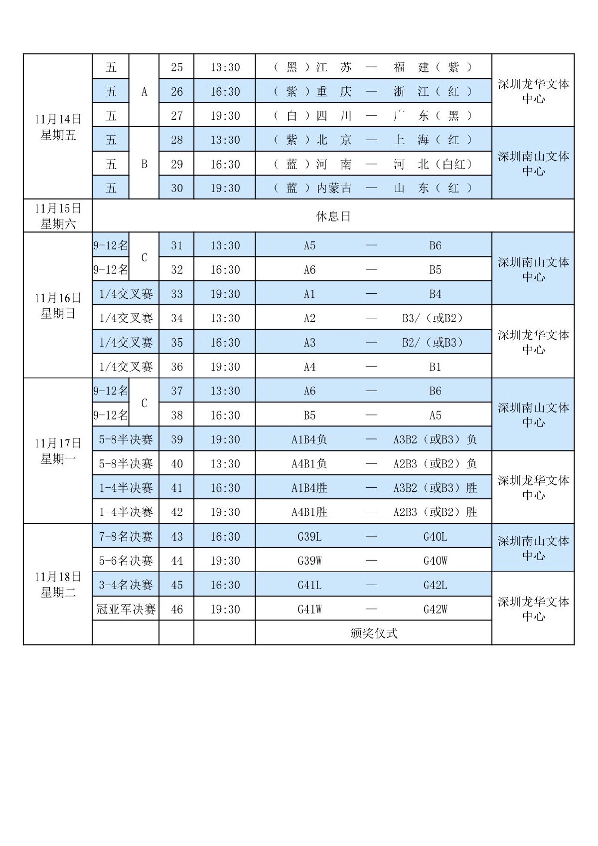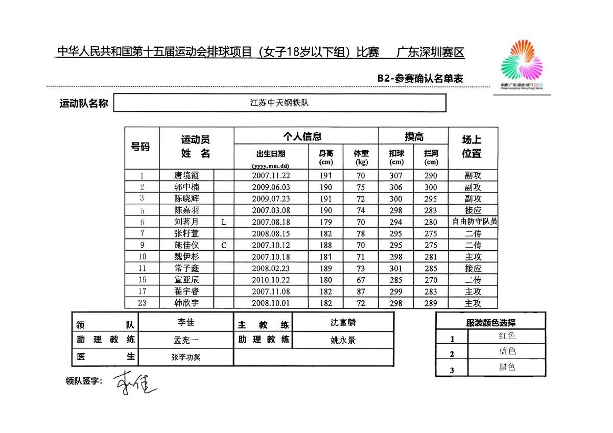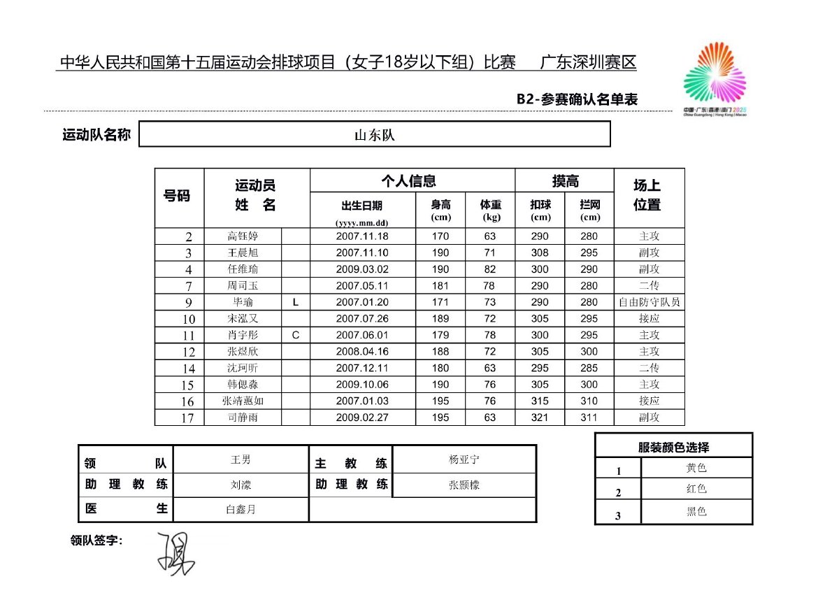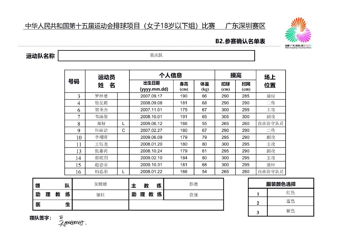 第十五届全国运动会排球项目(女子18岁以下组)比赛1号公告