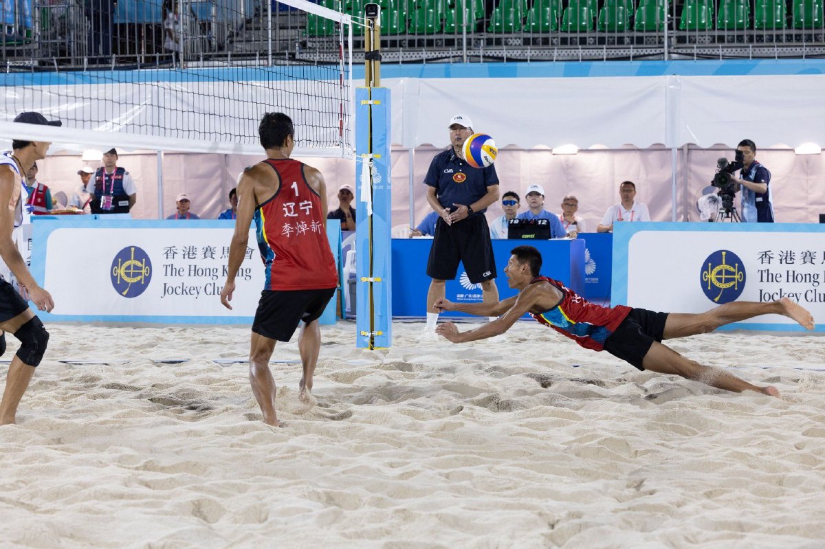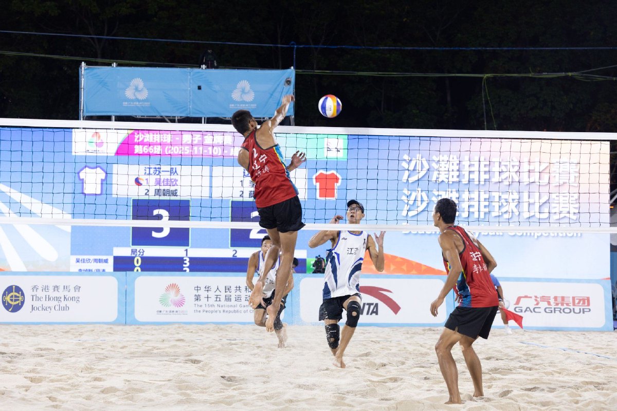 本届全运会沙滩排球决赛阶段比赛男子组于2025年10月31日开赛,经过小组赛、1/8决赛、1/4决赛和半决赛的激烈争夺后,于11月10日进入收官日。