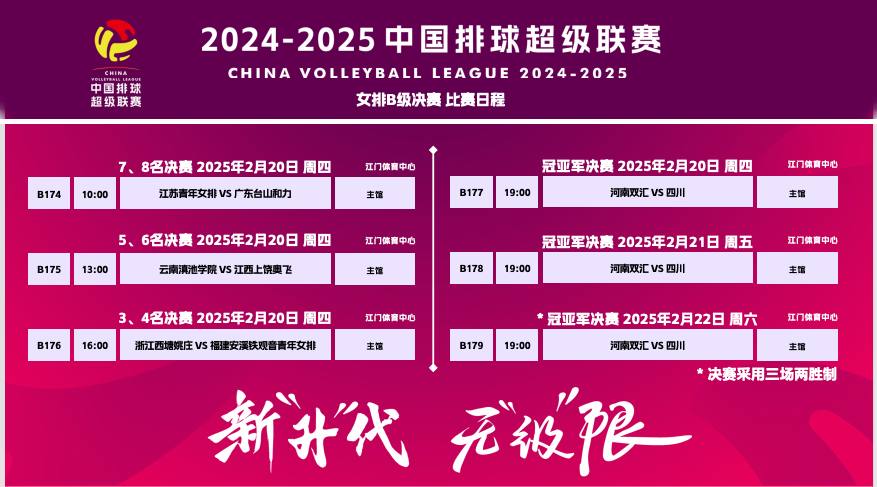 2024-2025中国女子排球超级联赛B级决赛赛程